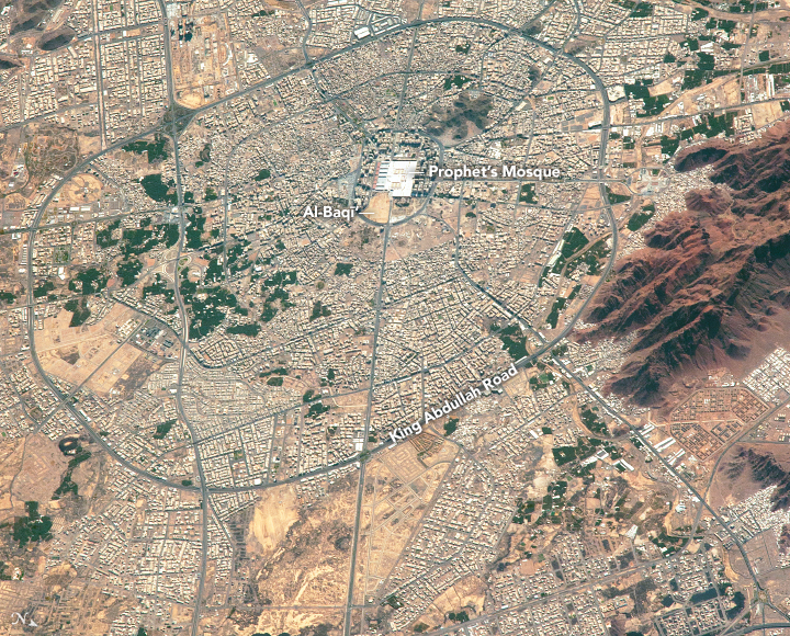 사우디아라비아는 와하비즘을 지지하여,[8] 역사적, 종교적으로 중요한 장소 숭배를 우상 숭배로 간주하여 반대한다. 이로 인해 메디나는 1,000년 넘은 건물을 포함한 상당한 물리적 유산 파괴를 겪었다.[8][38] 비평가들은 이를 "사우디 반달리즘"이라 묘사하며, 지난 50년간 메디나와 메카에서 무함마드, 가족, 동료 관련 역사적 장소 300곳이 사라졌다고 주장한다.[39] 알 바키의 철거가 대표적이다.[8]