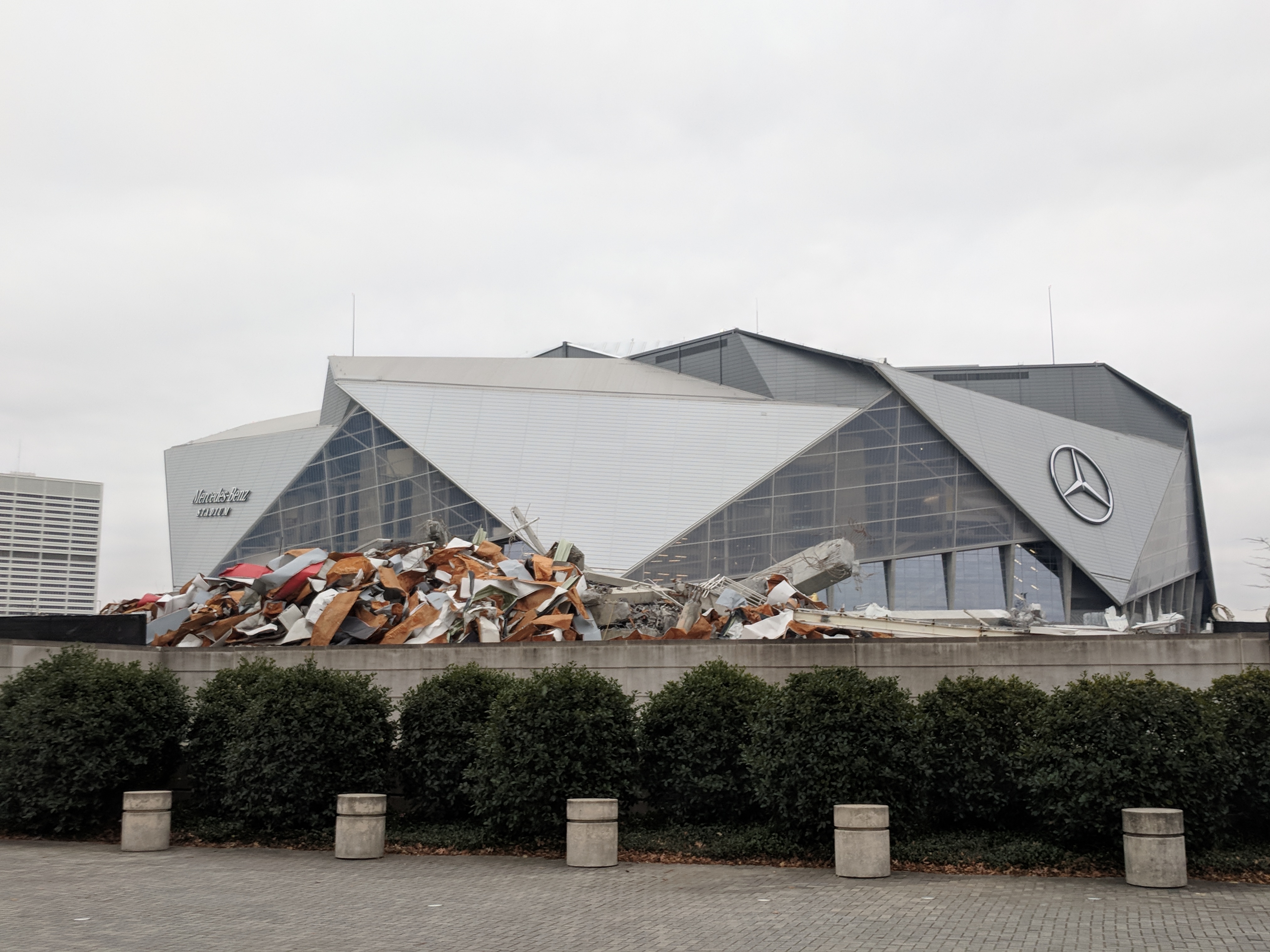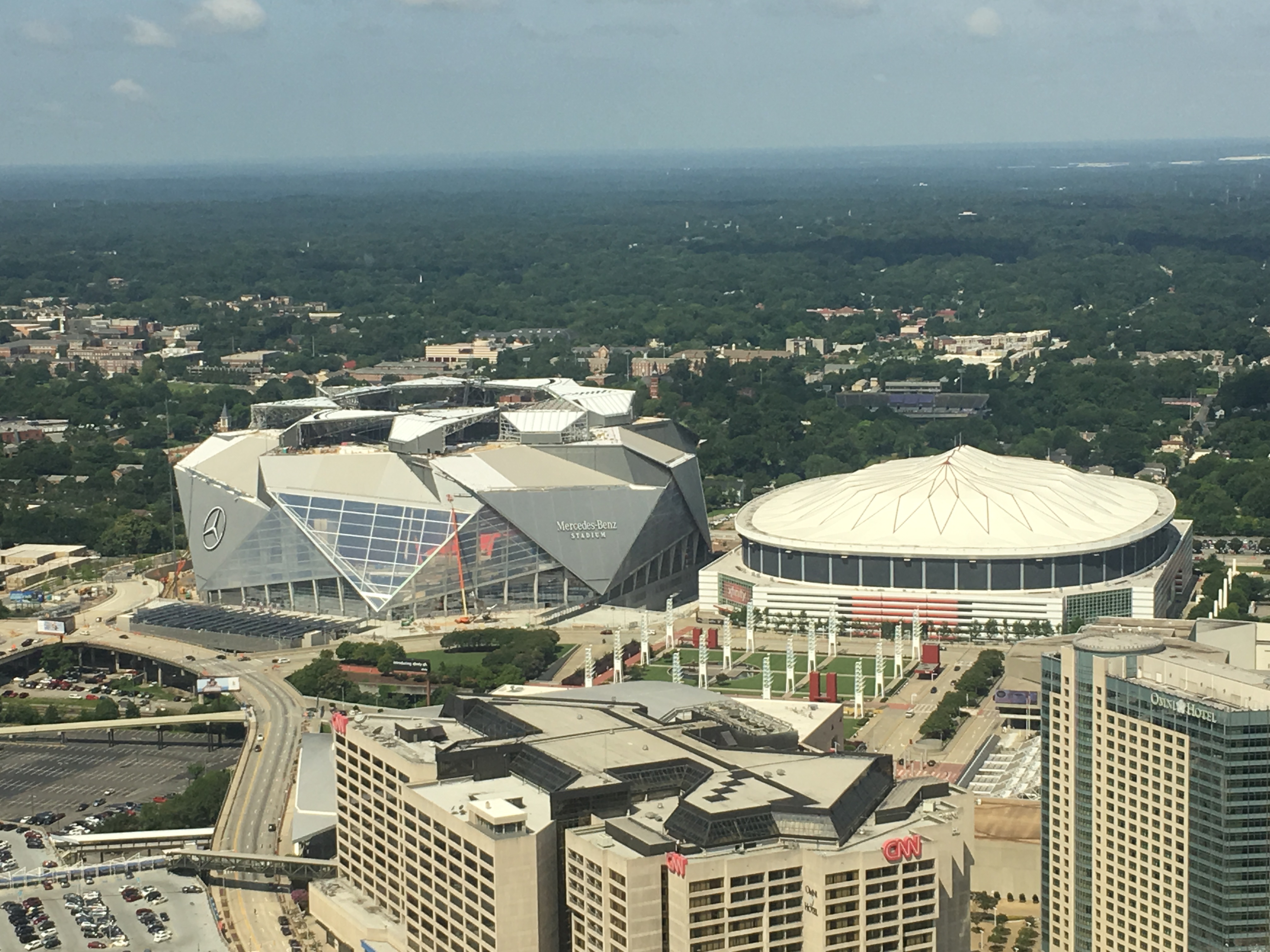 조지아 돔은 1992년 완공되어 2017년 철거될 때까지 애틀랜타의 주요 다목적 경기장으로 사용되었으며, 특히 애틀랜타 팰컨스의 홈구장과 1996년 하계 올림픽 주요 경기장으로 기능했다. - 메르세데스-벤츠 - 시저스 슈퍼돔