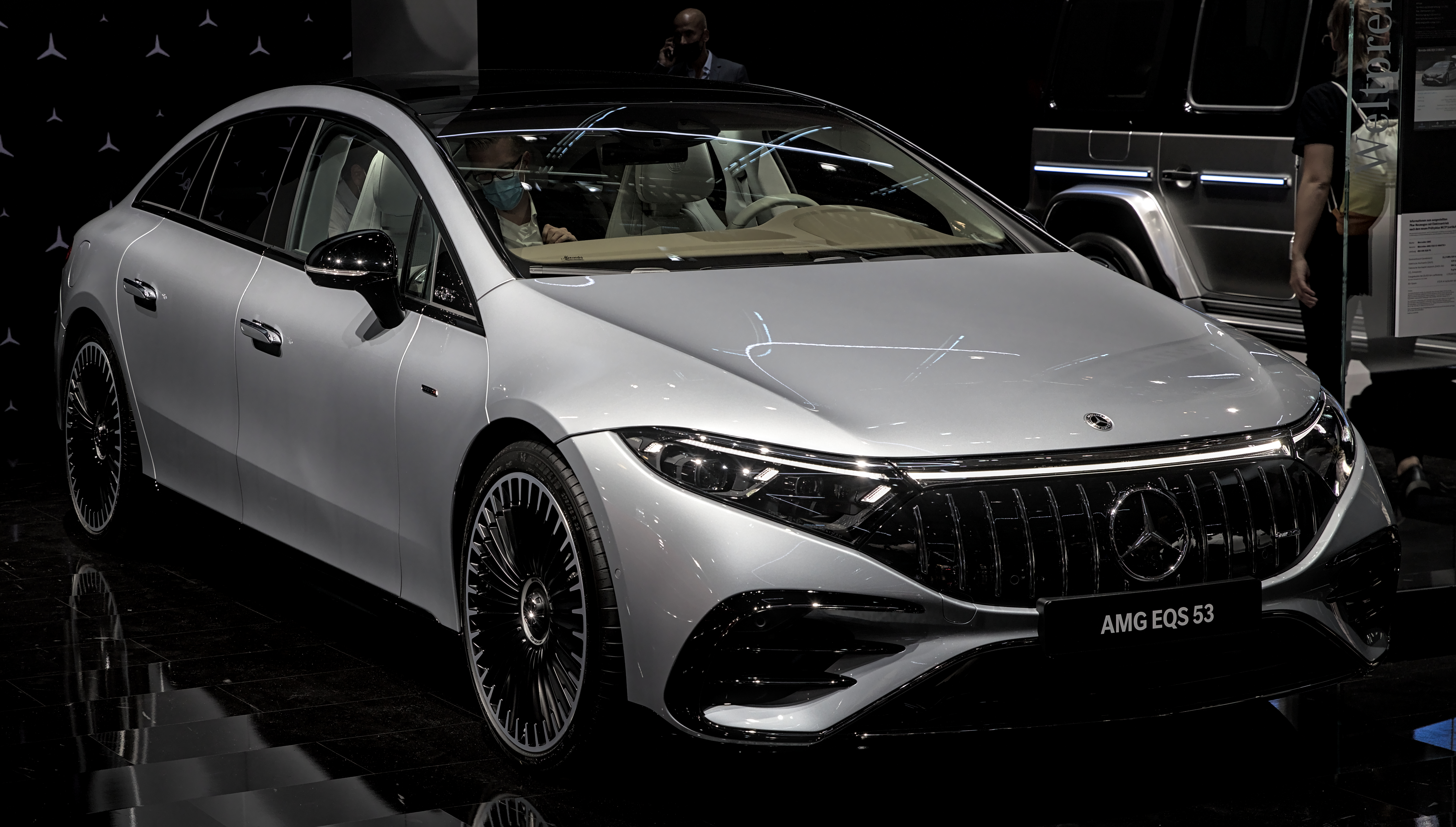 메르세데스-AMG EQS 53 4Matic+는 2021년 9월 뮌헨 모터쇼에서 공개되었으며, 최초의 완전 전기 AMG 자동차이다. 이 차량은 560kW의 출력을 내고 의 토크를 전달하는 두 개의 전기 모터를 탑재했다. 모터의 더 높은 출력을 맞추기 위해 핸들링 특성 및 냉각 시스템이 업그레이드되었다.[14]