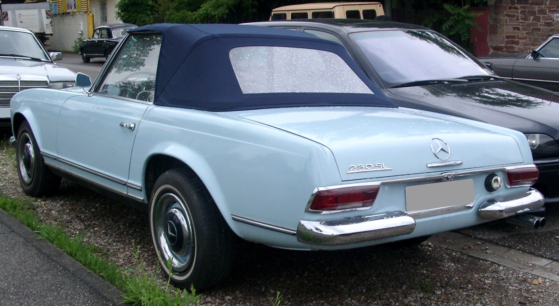 230 SL은 1963년에 독특한 오목한 지붕선으로 "파고다 탑"이라는 별명을 얻었다. W113은 낮은 웨스트라인, 큰 곡선형 그린하우스 창문, 분리 가능한 하드탑, 새로운 2.3리터 직렬 6기통 엔진을 특징으로 했다.