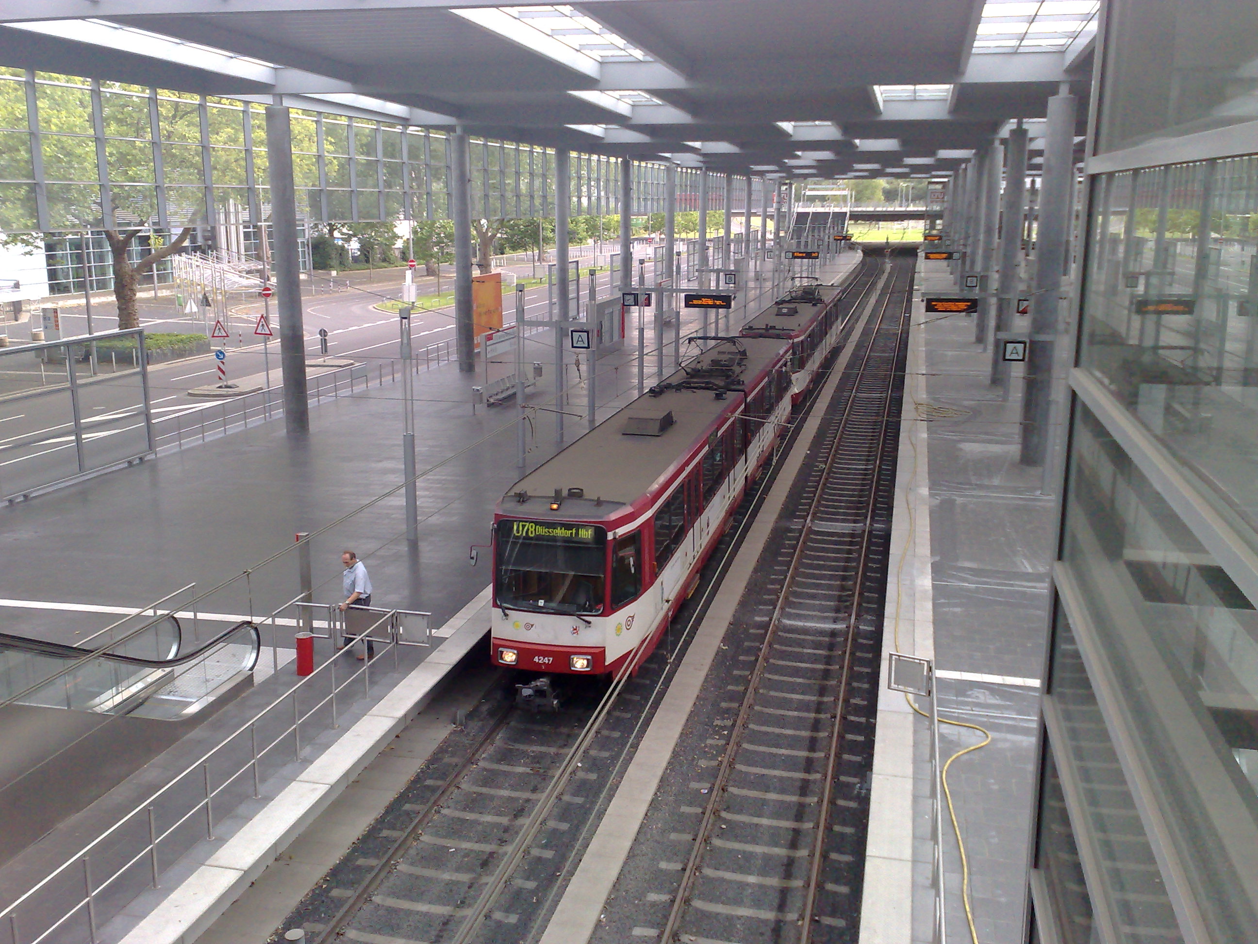 메르쿠어 슈필-아레나/메세 노르트역은 라인-루르 교통 연합의 일부인 뒤셀도르프 도시 철도 78번 노선의 종착역이다.[1]