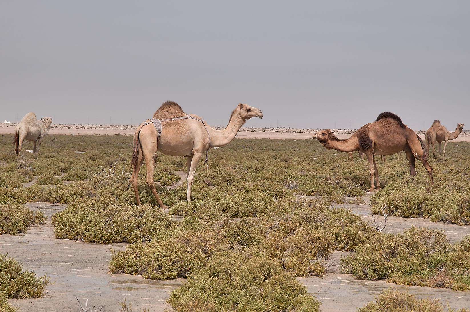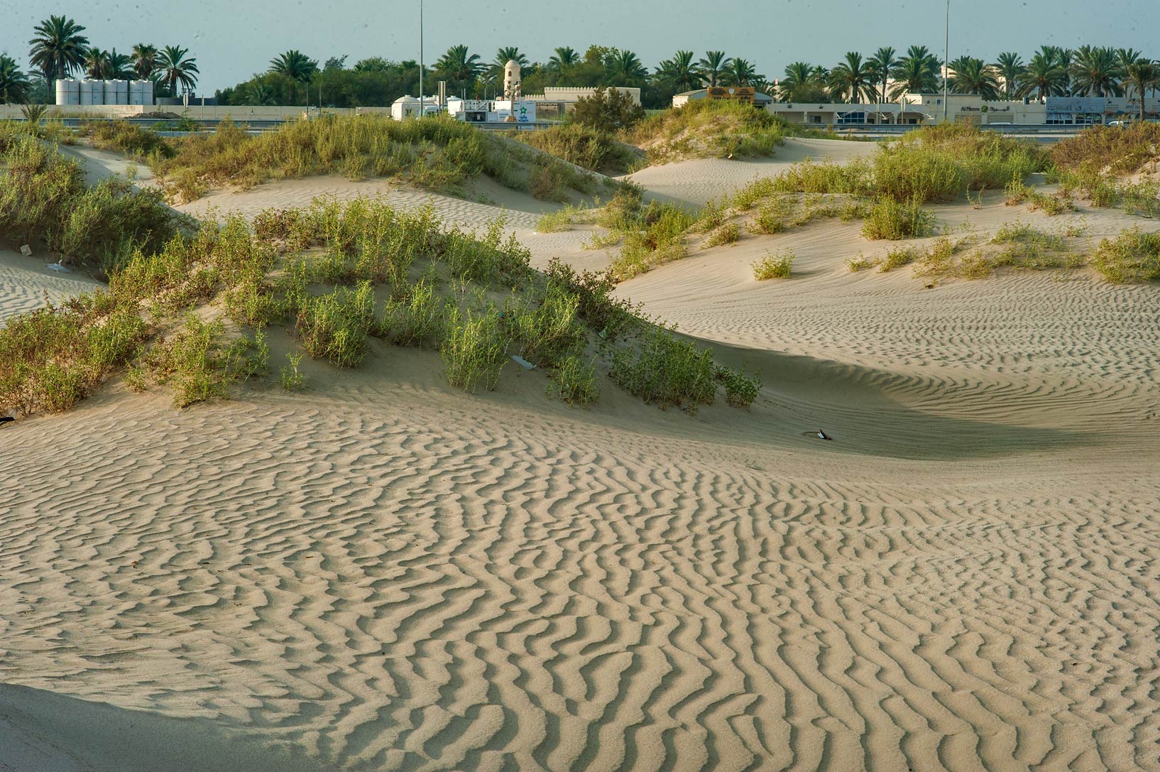 동쪽 구역은 해안에 사브카(염생 평원)로 둘러싸인 낮고 바위가 많은 곶 위에 위치해 있다. 남쪽 부분은 사구로 특징지어지는데, 이 사구는 지역적으로 ''샤말''로 알려진 북북서풍에 의해 끊임없이 이동한다.[22][23] 주거 구역이 위치한 해안의 북동쪽에는 해발 9m 높이에 있는 언덕이 있다.[24] 메사이드 해안선을 따라 약 262헥타르의 맹그로브가 발견된다.[25]