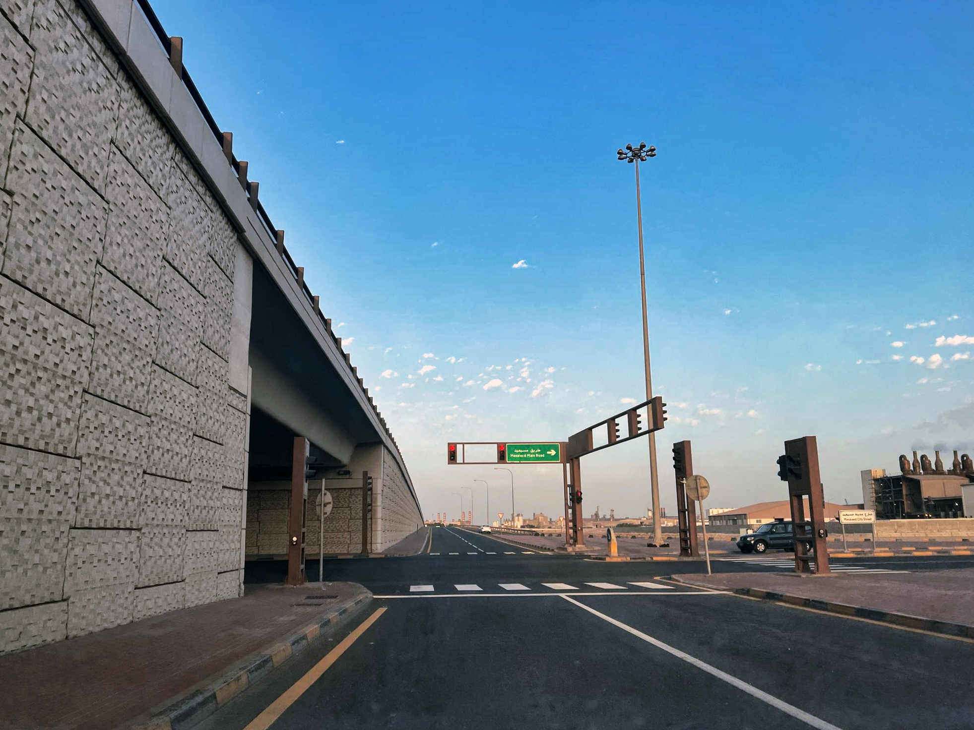 카타르 에너지(당시 카타르 석유 공사)는 1940년대 후반 메사이드에 최초의 도로를 건설했다. 이 도로는 1955년에 포장되었으나, 1960년대에 낡아졌다. 1968년 정부는 메사이드에서 알 와크라로 이어지는 도로 시스템 개발을 담당하게 되었다.[48] 1977년, 윌리엄 L. 페레이라 & 어소시에이츠가 도로 시스템 계획을 설계했고, 같은 해 공공 사업청에서 공사를 시작했다.[48]
