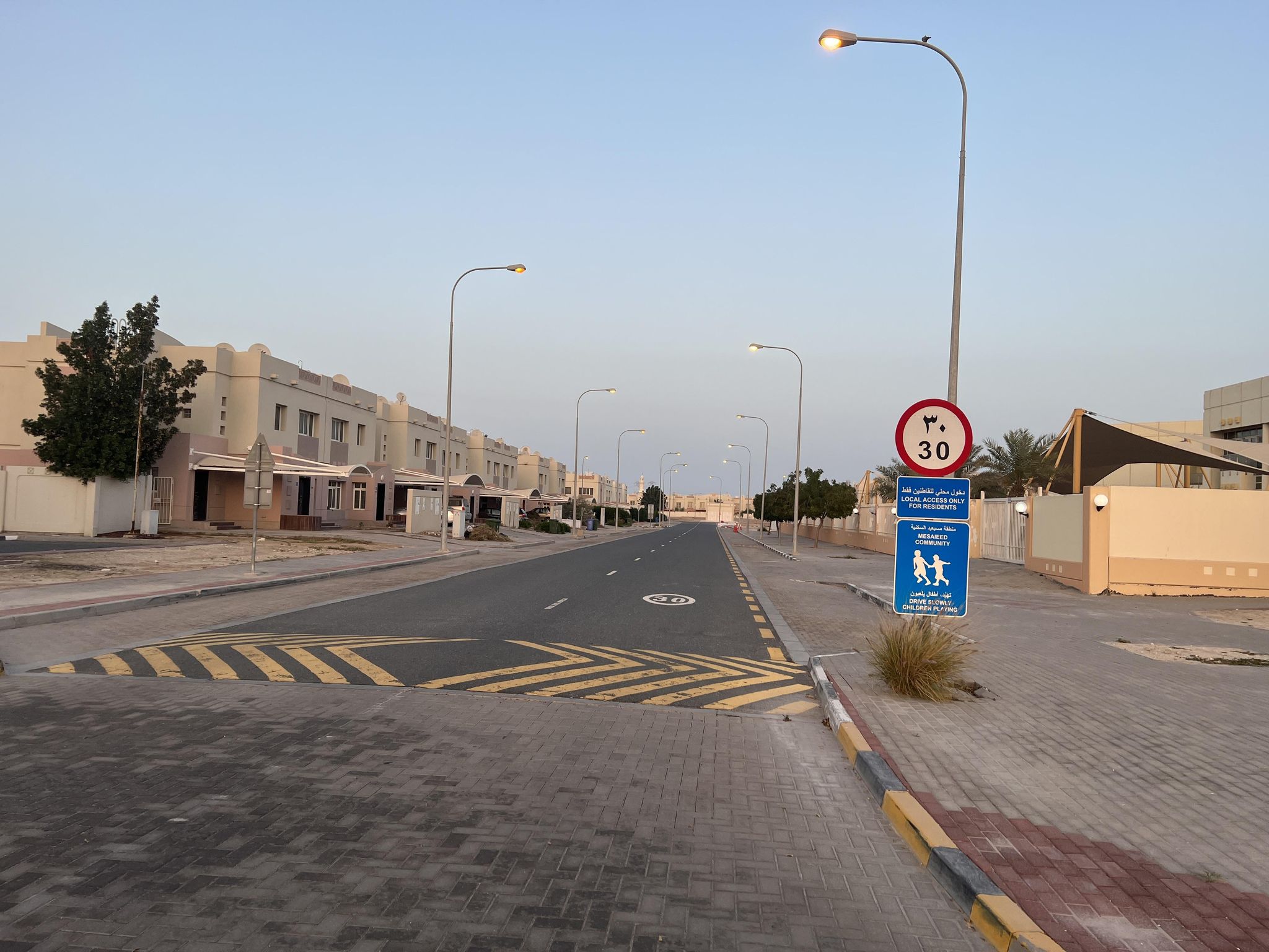 초기 메사이드는 산업 지역(남쪽), 모래 언덕과 에너지 회랑(서쪽), 사브카(염생 평원)(동쪽) 등으로 인해 주로 북쪽으로 확장되었다. 북쪽과 서쪽의 주요 도로는 사우디 국경, 알 와크라 및 도하로의 연결을 용이하게 했다.[8]