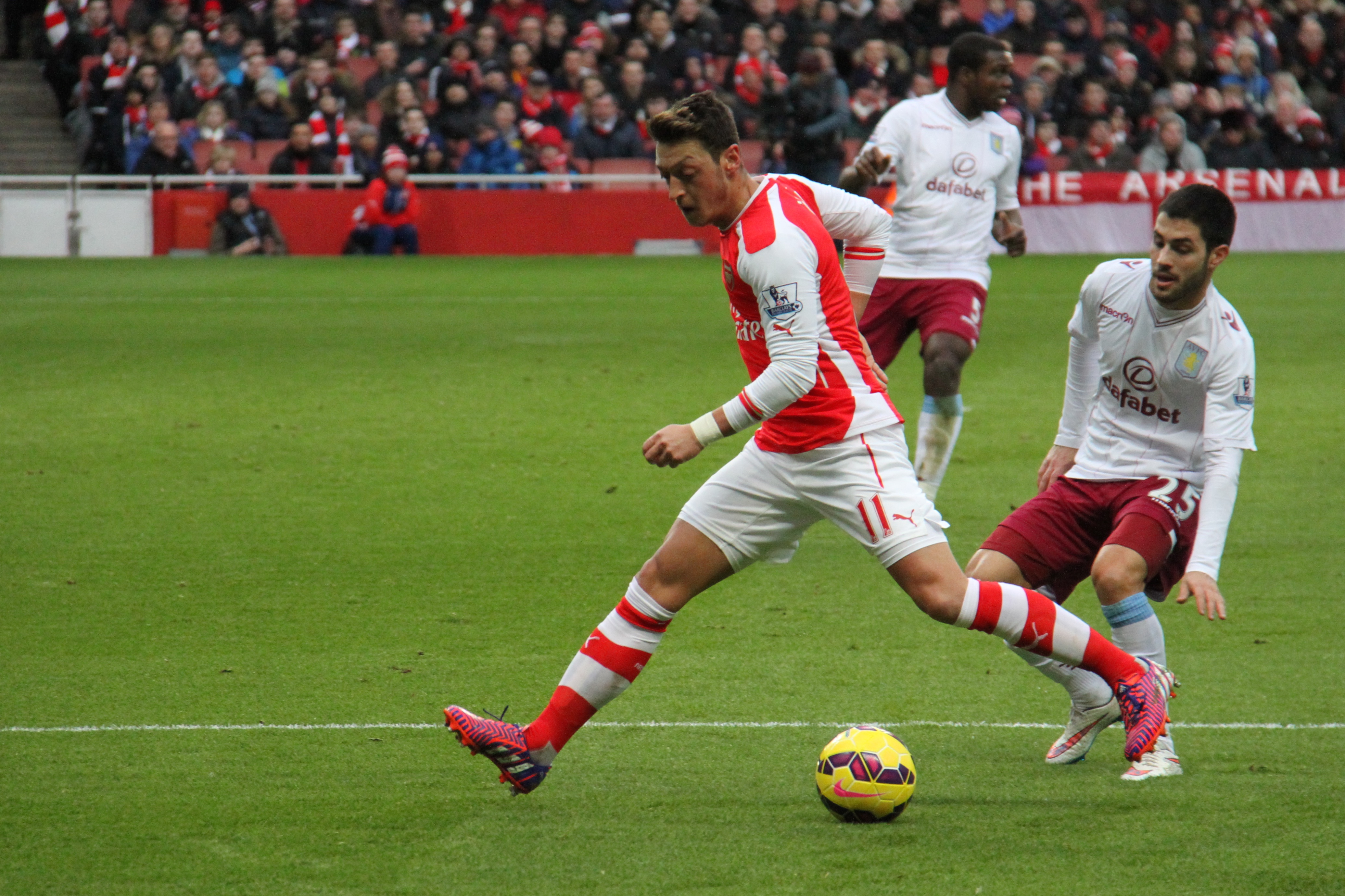 4월 18일, 2014-15 FA컵 준결승 레딩과의 경기에서 알렉시스 산체스에게 두 개의 어시스트를 기록하며 2-1 승리에 기여했다.[595] 5월 30일, 2015년 FA컵 결승전에 선발 출전하여 아스널이 애스턴 빌라를 4-0으로 완파하는 데 기여했다. 외질은 아스널에서의 두 번째 시즌 동안 모든 대회를 통틀어 33경기에 출전하여 5골 9어시스트를 기록했고, 2년 연속 FA컵 우승을 차지했다.[596][597]