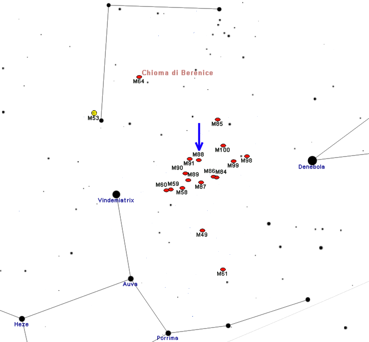 샤를 메시에는 1781년 3월 18일에 M88을 발견했다. 같은 날 메시에가 발견한 다른 천체로는 구상 성단 M92와 8개의 은하가 있다.