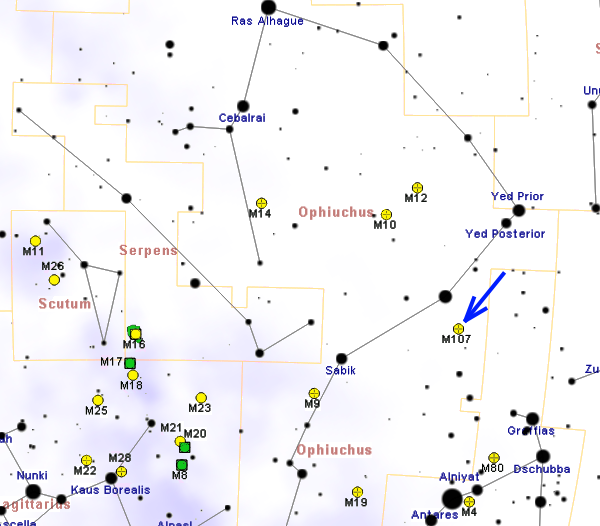 메시에 107의 위치를 나타내는 지도