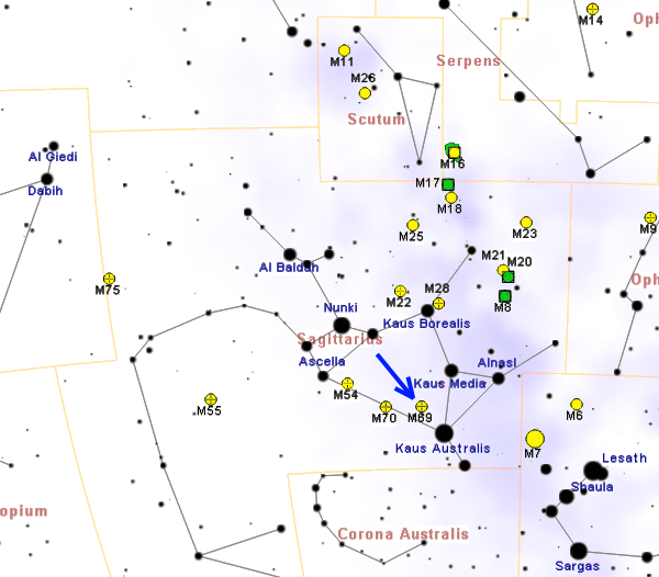 메시에 75는 밀도가 높고 밝게 보이는 구상 성단으로, 은하계 내 메시에 천체 중 가장 멀리 떨어져 있으며, 1780년 피에르 메생에 의해 발견된 후 여러 천문학자들에 의해 관측되었다. - 궁수자리 - 메시에 24