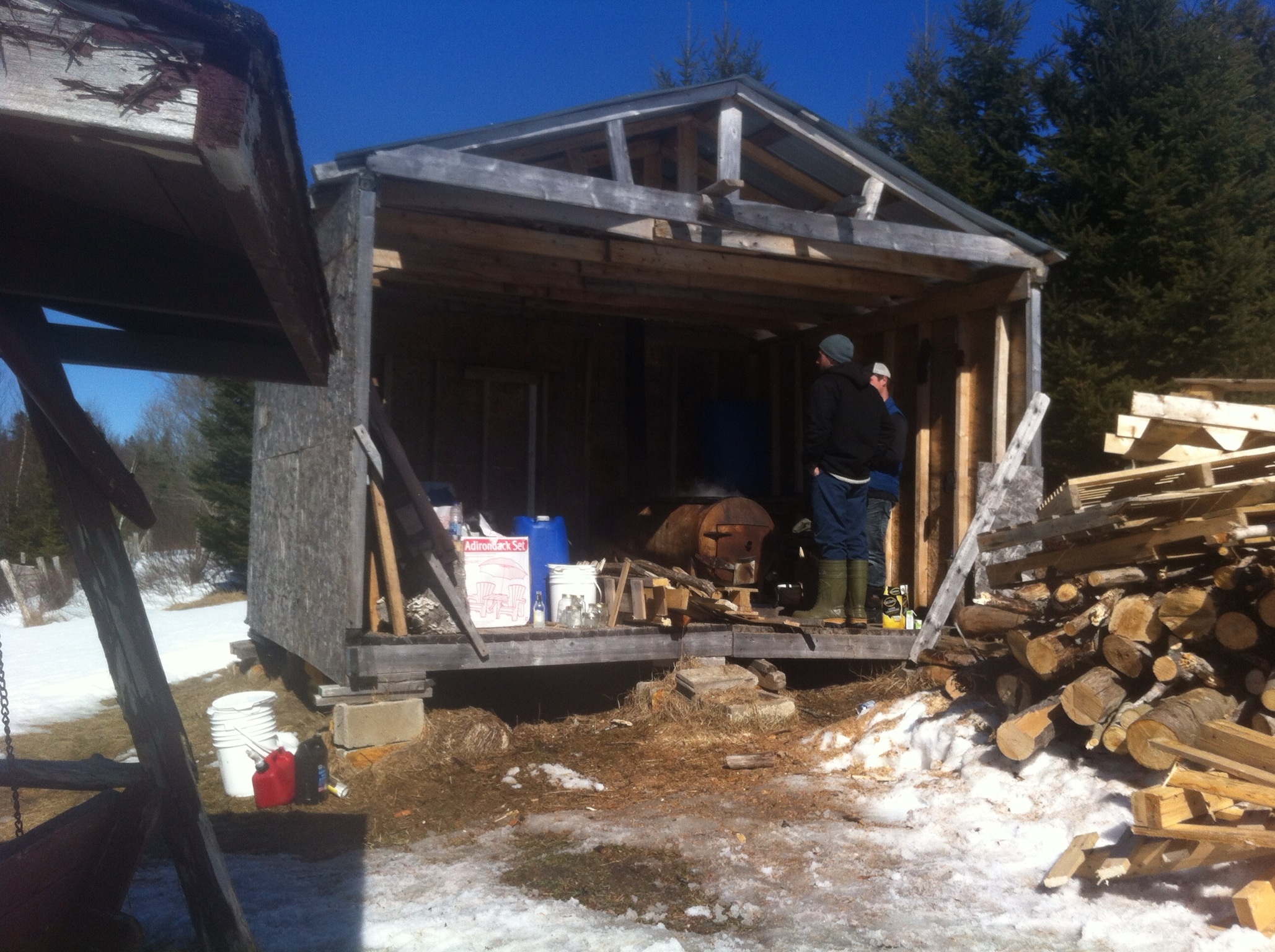 메이플 시럽 생산 농장은 "슈거부시"라고 불린다. 수액은 "슈거하우스"에서 끓이며, 이 건물은 증기 배출을 위해 루브르 창문이 설치되어 있다.[41]