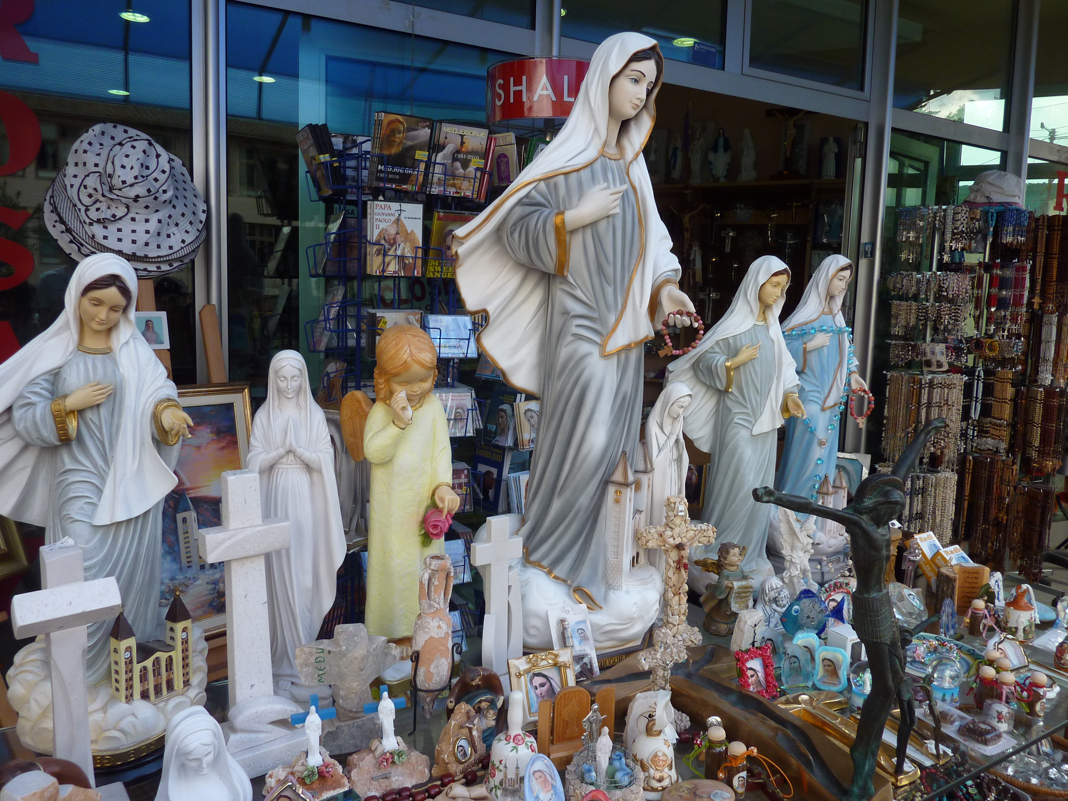 메주고레 마을 거리에서 흔히 볼 수 있는 종교 상업의 모습