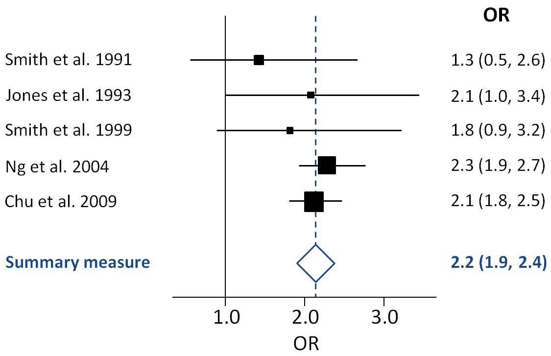 무작위 비교 시험에서 치료군과 대조군의 개선도 차이가 작으면 통계적 유의성이 있는 차이가 발견되지 않을 수 있다. 그러나 메타분석을 통해 모집단의 수를 늘려 통계적 유의성이 있는 차이가 발견될 가능성을 높인다.