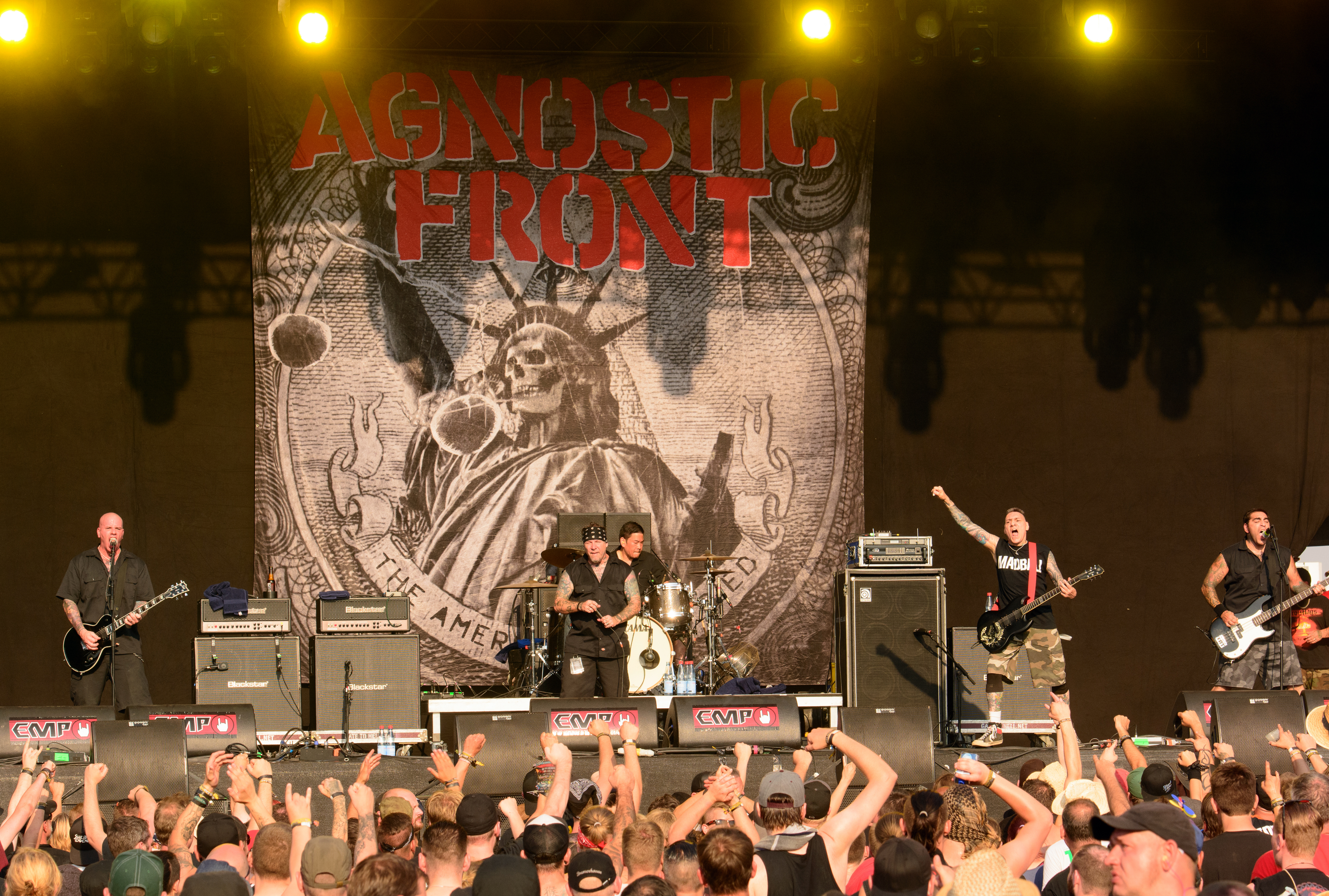 이러한 크로스오버 스래시 씬은 1984년에 태동한 뉴욕 하드코어 씬에 영향을 주었다. 이 씬에는 크로-마그스, 머피스 로(Murphy's Law), 아그노스틱 프론트[196], 워존(Warzone)[197] 등이 있었다. 크로-마그스는 이들 중 가장 영향력 있는 밴드였으며, 배드 브레인즈, 모터헤드, 블랙 사바스 등에게 영향을 받았다.[198] 크로-마그스는 스트레이트 엣지와 크리슈나 사상을 신조로 삼았다.[199] 1982년 결성된 크럼서커스(Crumbsuckers)는 뉴욕 출신의 메탈 영향을 받은 스트레이트 엣지 밴드였다. 1985년에는 배드 브레인즈의 레게와 메탈 배경으로 인해 브레이크다운이 대유행했다.[200]
