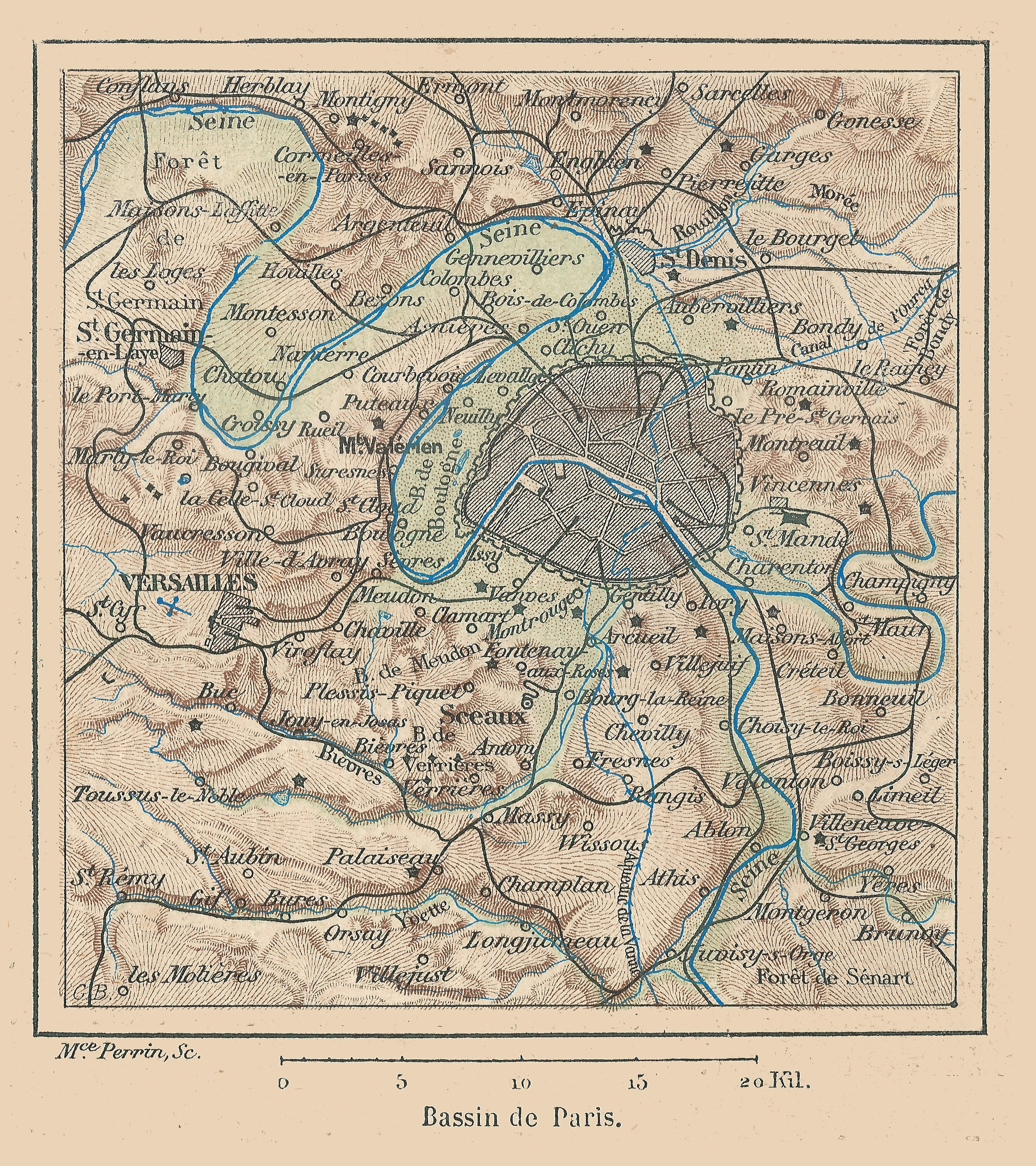 1894년 파리 분지 일대 지도 (stricto sensu). 프란츠 슈라더 작품.