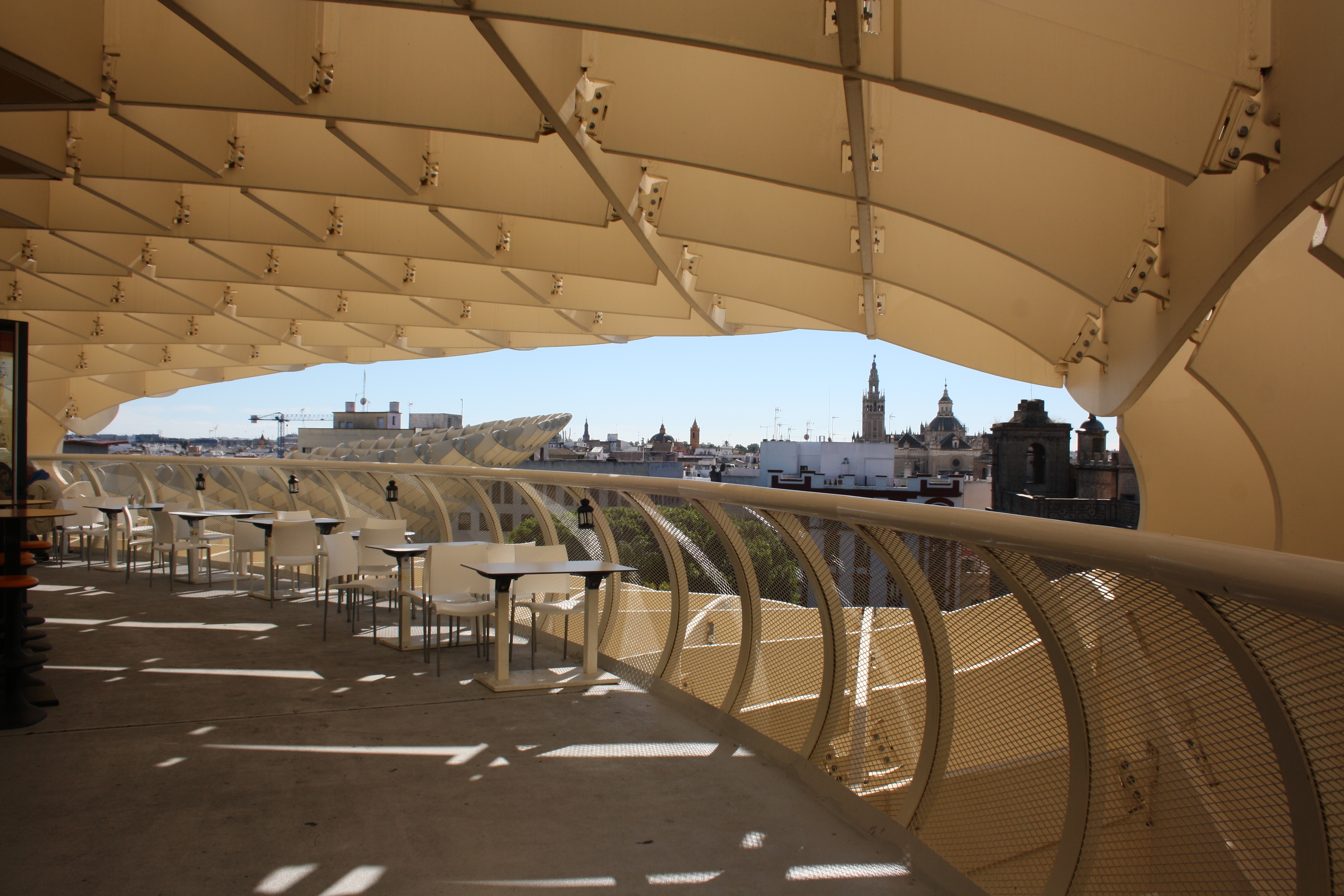 - 2층 및 3층: 세비야 시내 중심부를 조망할 수 있는 탁 트인 테라스와 레스토랑, 야외 전망대가 조성되어 있다.[9]