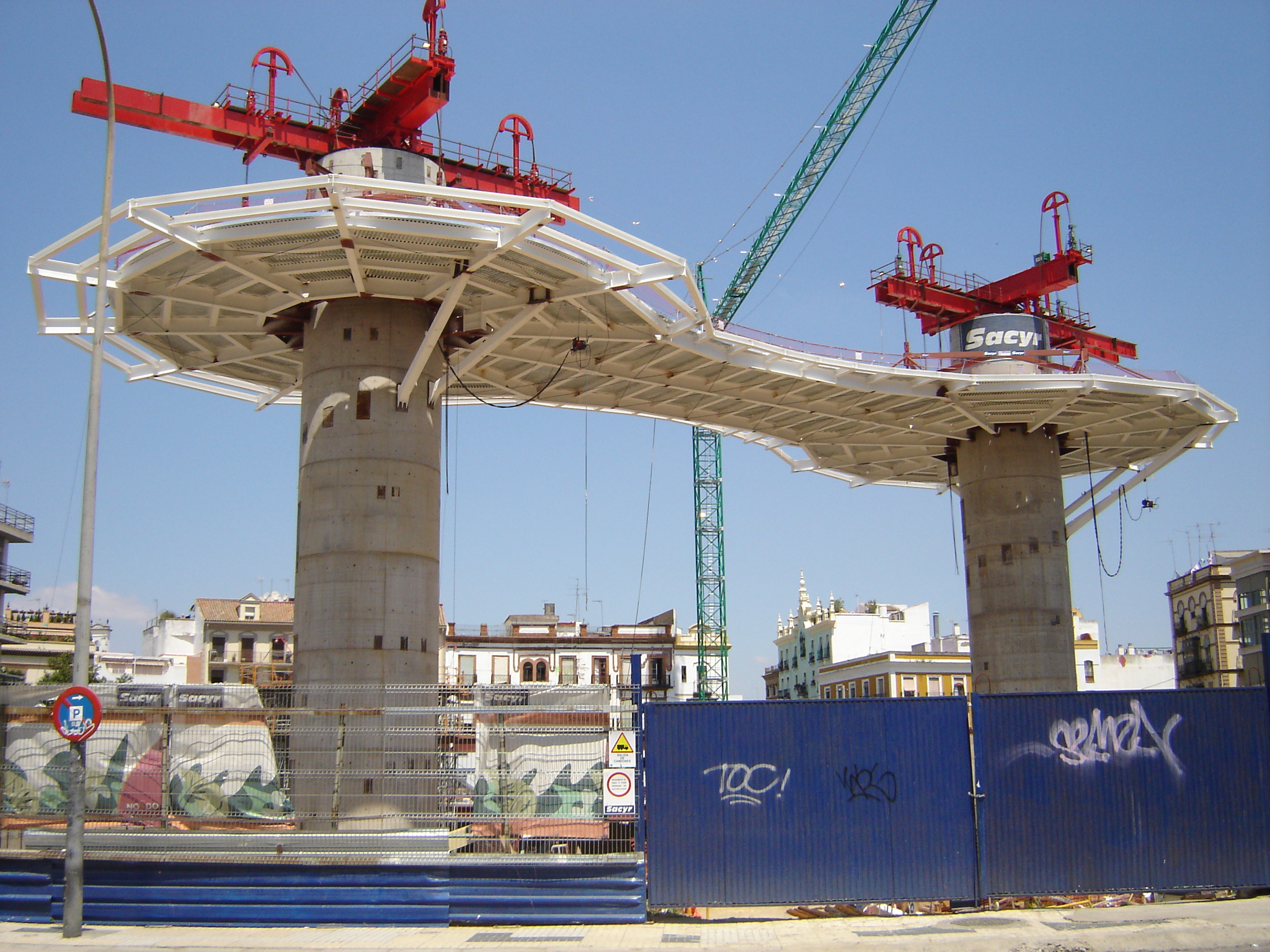 건설은 2005년 6월 26일에 시작되었으며, 초기 예상 비용은 5000만유로이고 완공 예정일은 2007년 6월이었다. 그러나 2007년 5월, 엔지니어링 회사인 아럽(Arup Group Limited)은 세비야 시 당국에 기술적인 문제를 지적했다. 아럽은 제출된 설계안이 기술적으로 실현 불가능하며, 여러 구조적 가정이 검증되지 않았고, 설계 자체가 알려진 재료의 기술적 한계를 넘어서는 것으로 보인다고 보고했다.