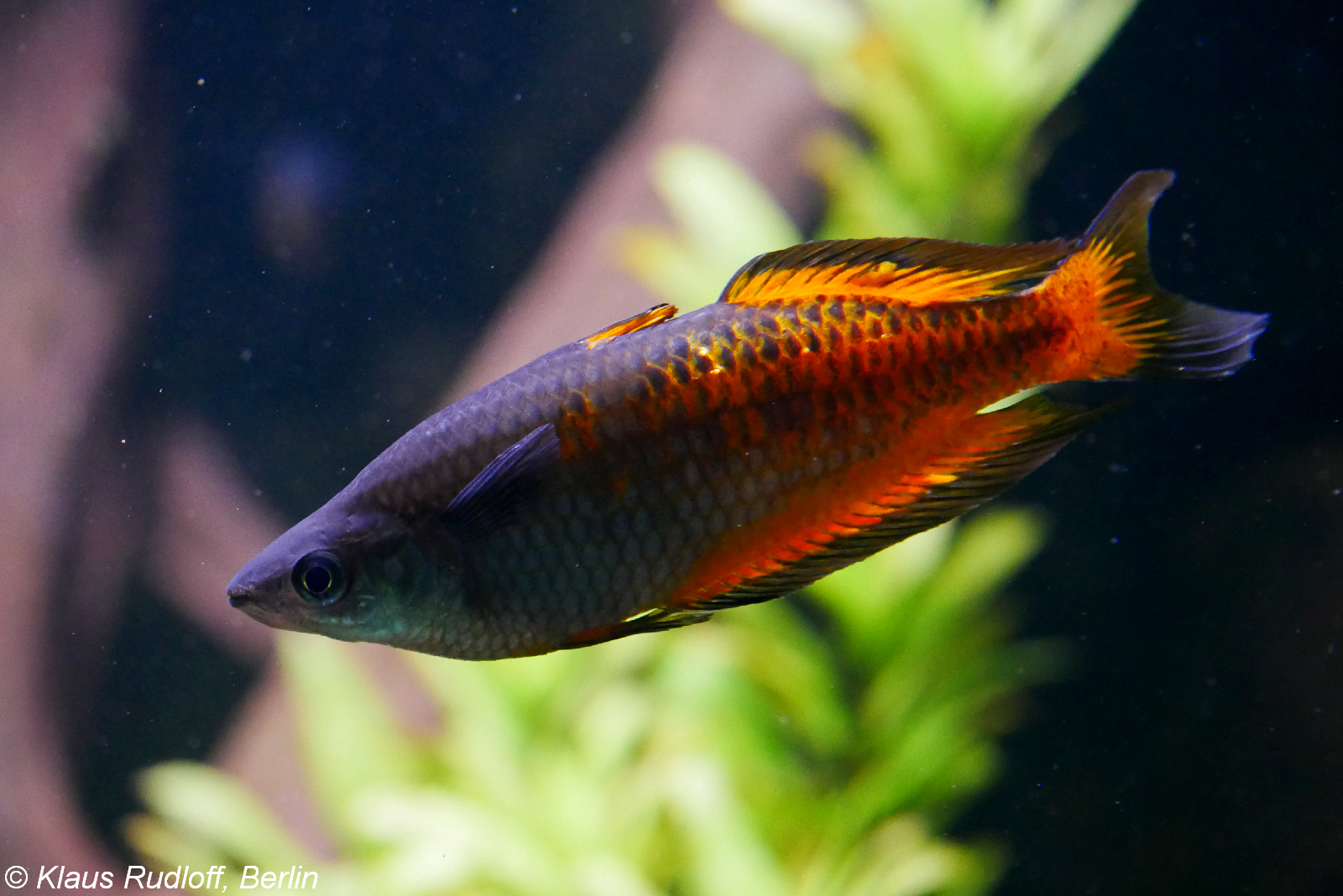 : 영명은 orange rainbowfish이다. 전체 길이 약 10cm이다. 뉴기니 섬에 서식한다. 몸의 전반부에 보라색 광택, 후반부에 오렌지색 광택이 있다.