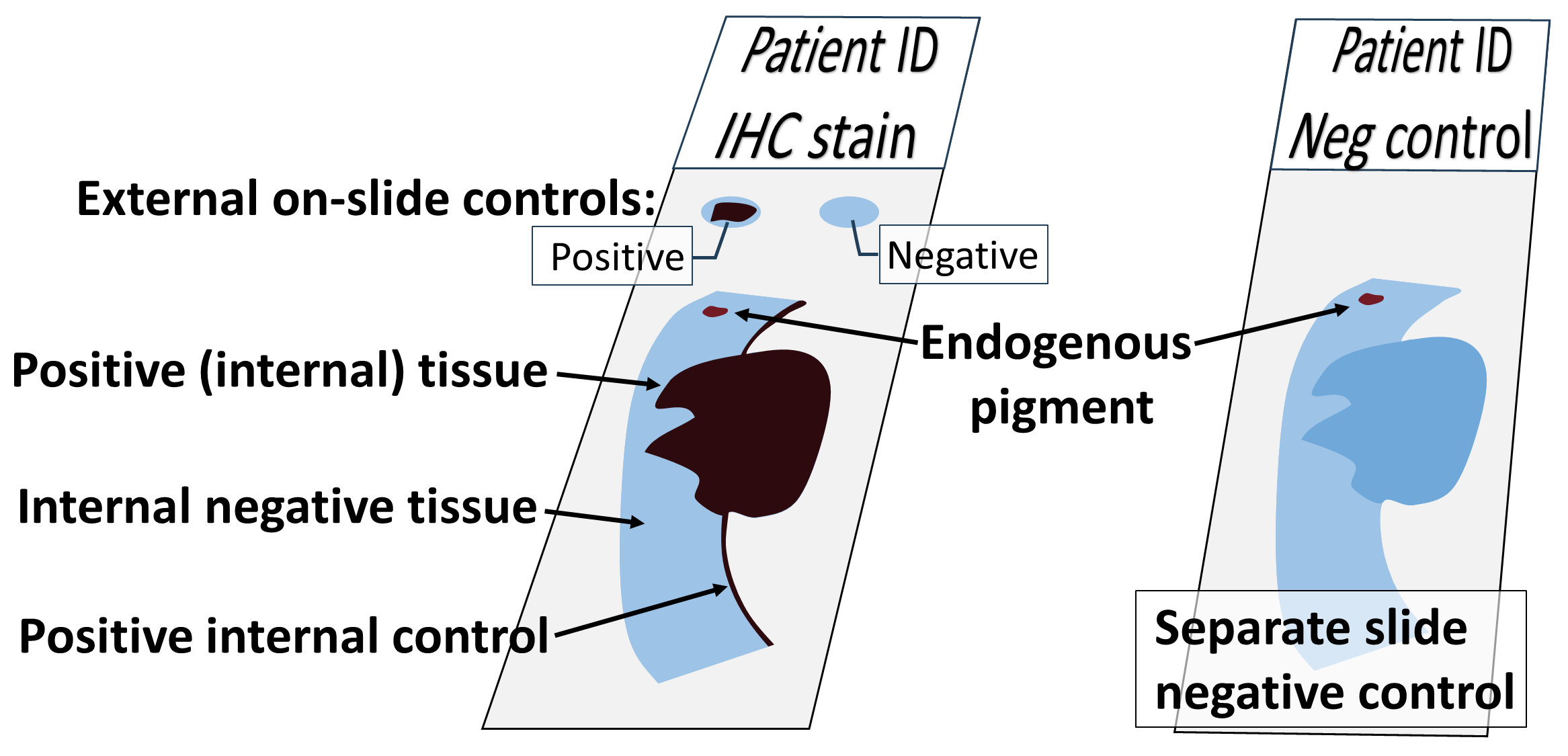 배경 염색을 제거하는 방법으로는 1차 또는 2차 항체의 희석, 배양 시간 또는 온도의 변경, 다른 검출 시스템 또는 다른 1차 항체 사용 등이 있다. 품질 관리는 최소한 항원을 발현하는 것으로 알려진 조직을 양성 대조군으로, 항원을 발현하지 않는 것으로 알려진 조직을 음성 대조군으로 포함해야 하며, 1차 항체를 생략하거나(또는 더 나아가 1차 항체를 흡수) 동일한 방식으로 검사 조직을 검사해야 한다.[5][18]