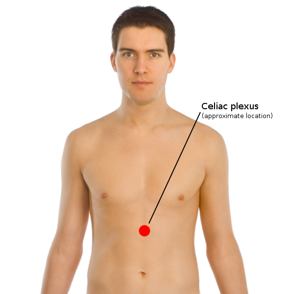 격투나 부상 상황에서 복강 신경총 주변의 복부를 가격하는 것을 보통 "명치를 맞았다"라고 표현한다. 이 경우 복강 신경총 자체를 가리키는 것이 아니라 그 주변 부위를 지칭한다. 이 부위를 맞으면 횡격막에 경련이 일어나 호흡 곤란을 겪을 수 있으며, 이는 흔히 "숨이 막히다"라고 알려진 느낌이다. 또한 복강 신경총 자체에도 영향을 미쳐 심한 통증을 유발하고 내장의 기능에 지장을 줄 수 있다.4. 2. 복강 신경총 차단술 및 절제술