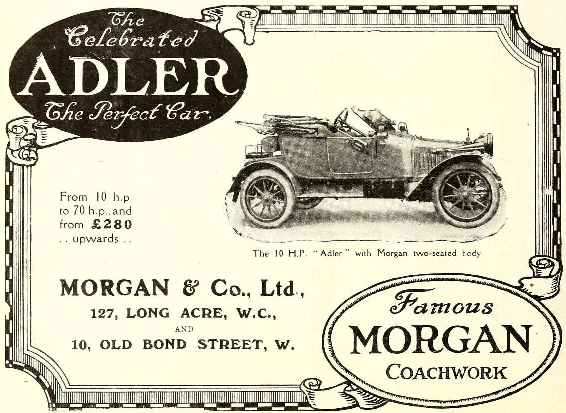 모건의 4륜 "애들러" 광고, ''The Aeroplane'', 1912년 8월 15일자