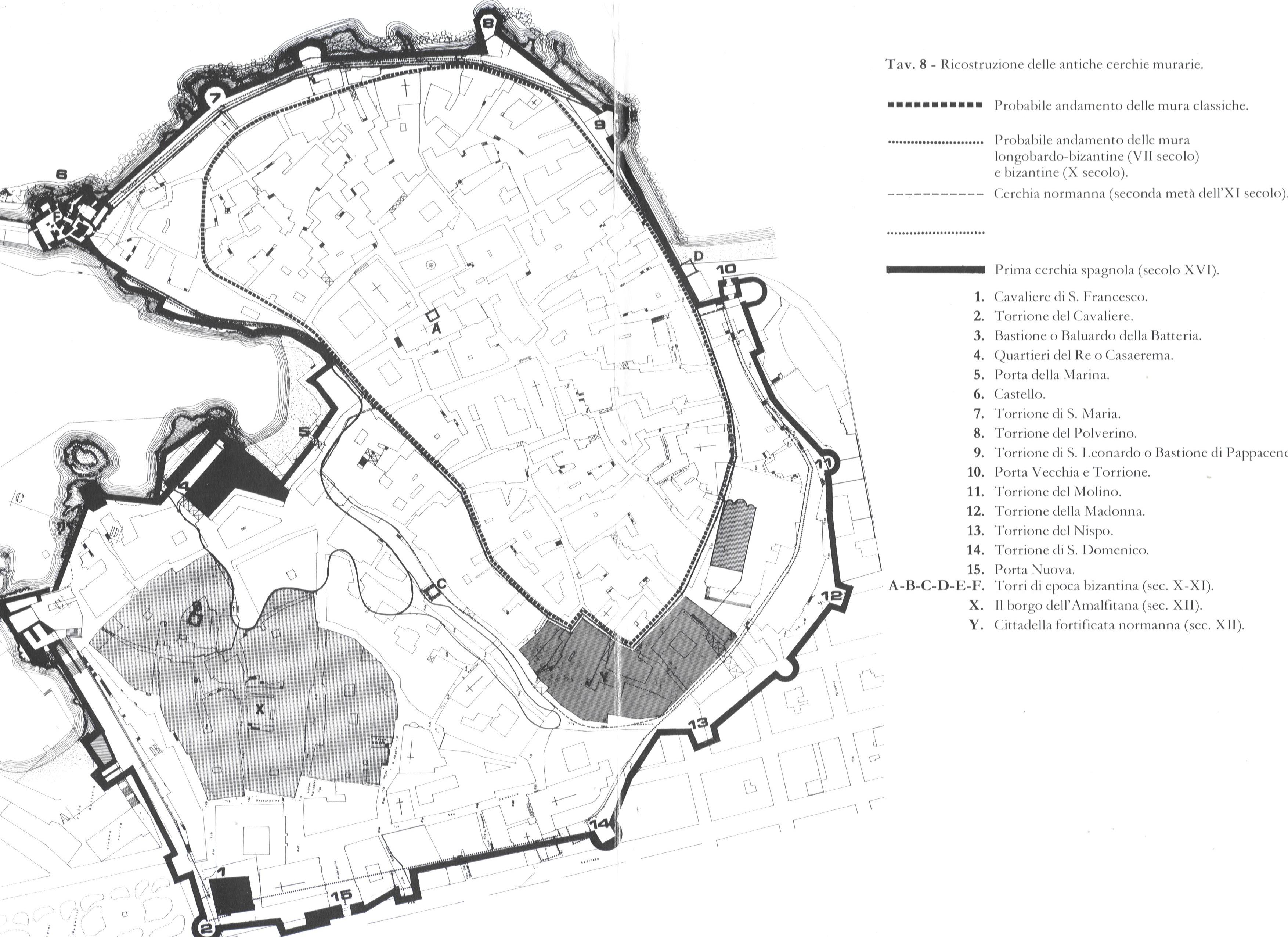 - 1086년 노르만 영주 콘베르사노의 고드프리가 건설한 성 스테파노 해안 성. 이후 베네딕토 수도원으로 바뀌었다.