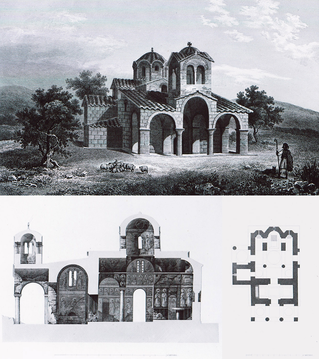 프랑스 탐사대는 고대 유적뿐만 아니라 비잔틴 기념물에도 주목했다. 아벨 블루에는 나바리노의 구세주 변용 교회, 오스피노, 모돈의 성 바실 교회, 안드루사의 성 조지 교회와 사마리 교회, 부르카노 수도원 등 다양한 비잔틴 건축물에 대한 상세한 기록을 남겼다.[1][113]