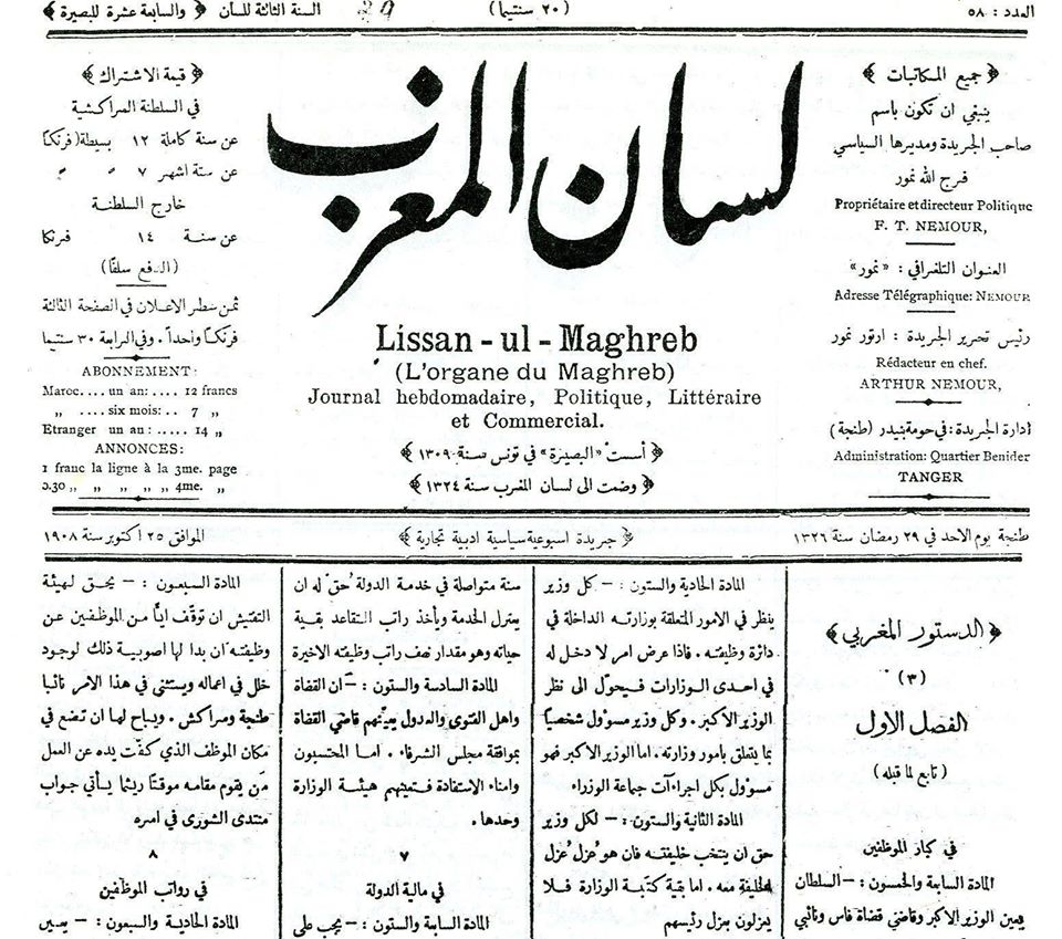초기 모로코 신문인 ''리산-울-마그레브''.