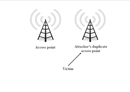 많은 스마트폰은 이전에 연결했던 무선 LAN을 기억하므로 사용자는 매번 다시 식별할 필요가 없다. 그러나 공격자는 실제 네트워크와 동일한 매개변수와 특성을 가진 Wi-Fi 액세스 포인트 트윈을 만들어 사용자를 유인할수 있다. 공격자는 이를 통해 암호화되지 않은 모든 데이터를 가로챌 수 있다.[8]