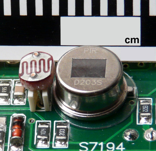 수동 적외선(PIR) 센서는 실온의 배경 물체와 달리, 사람의 피부 온도에 중적외선 파장에서 민감하게 반응한다.[3] 센서에서는 에너지가 방출되지 않으므로 '수동 적외선'이라는 이름이 붙었다.[3] 이는 사람이나 차량의 통과가 가시광선 또는 적외선 빔을 차단하는 전기 눈(일반적으로 '모션 감지기'로 간주되지 않음)과 구별된다. 이 장치는 사람의 적외선 복사를 감지하여 물체, 사람 또는 동물을 감지할 수 있다.[4]