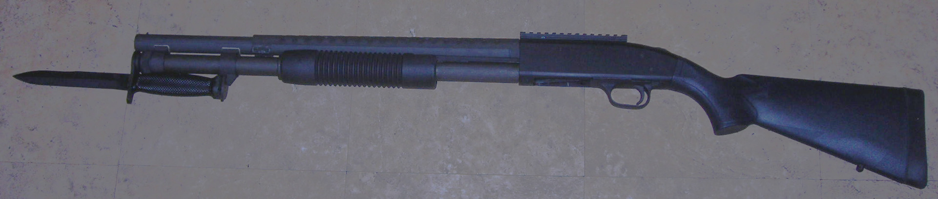 1970년대에 개발된 군용 모델. 매거진 캡이 배럴 테이크다운 링크를 유지하는 타입이며, 트리거 가드가 금속제로 변경되었다. 연사 시 과열로부터 사수를 보호하기 위한 히트 실드를 장비했다. 숄더 스톡은 나무에서 수지제로 변경되었고, 표면 처리는 무광 마감이다. 총신 하부에는 마운트 베이스가 설치되어 샷건에서는 드물게 총검을 부착할 수 있다. 리시버 톱에는 피카티니 레일, 버전에 따라 리어 사이트에 고스트 링 사이트를 채용하고 있다. 매거진 튜브를 연장하여 장탄수를 9발로 늘린 '''9-샷''' 모델도 있다.