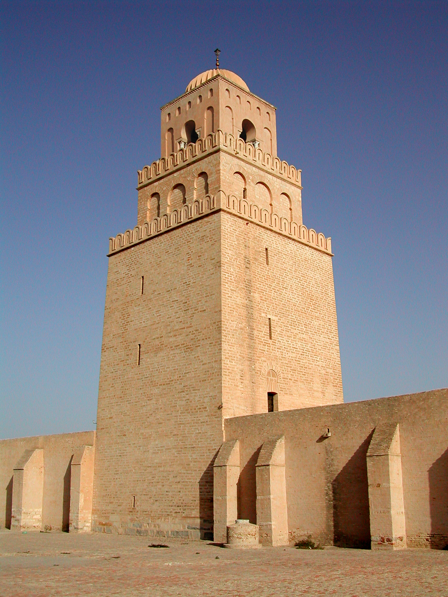 미나렛(첨탑)은 모스크의 일반적인 특징으로, 무아진이 아잔(예배 알림)을 외치는 곳이다. 미나렛은 모스크에서 가장 높은 지점이며, 초기 모스크에는 미나렛이 없었고 예배 알림은 작은 구조물이나 높은 플랫폼에서 이루어졌다.[82] 최초의 미나렛은 9세기 초 아바스 왕조 시대에 등장했으며, 카이루완 대모스크의 미나렛은 836년에 지어진 세계에서 가장 오래된 미나렛 중 하나이다.[83]
