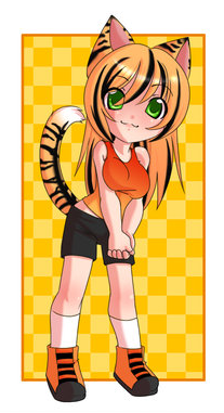 케모노미미|獣耳일본어는 문자 그대로 "짐승 귀"를 의미하며, 인간 및 인간과 유사한 캐릭터를 동물의 귀로 묘사하는 개념이며,[8] 더 나아가 꼬리와 같은 다른 특징을 묘사하는 개념이다.[7] 케모노미미는 종종 모에 의인화에서 인간 형태로 동물 캐릭터를 묘사하는 데 사용된다.[8] 고양이 소녀와 고양이 소년이 이 범주에서 가장 흔하게 나타나지만, 토끼 소녀, 여우 소녀, 강아지 소녀, 늑대 소녀도 흔하게 등장한다. 케모노미미 캐릭터는 일반적으로 동물을 닮은 특징이 추가된 것을 제외하면 인간과 유사하게 나타난다. 아즈마 히로키의 오타쿠 데이터베이스 소비 이론에서, 동물의 귀는 캐릭터에 다른 요소와 결합되어 팬들에게 정서적 반응을 유발하는 "''모에'' 요소"의 한 유형이다.[7]