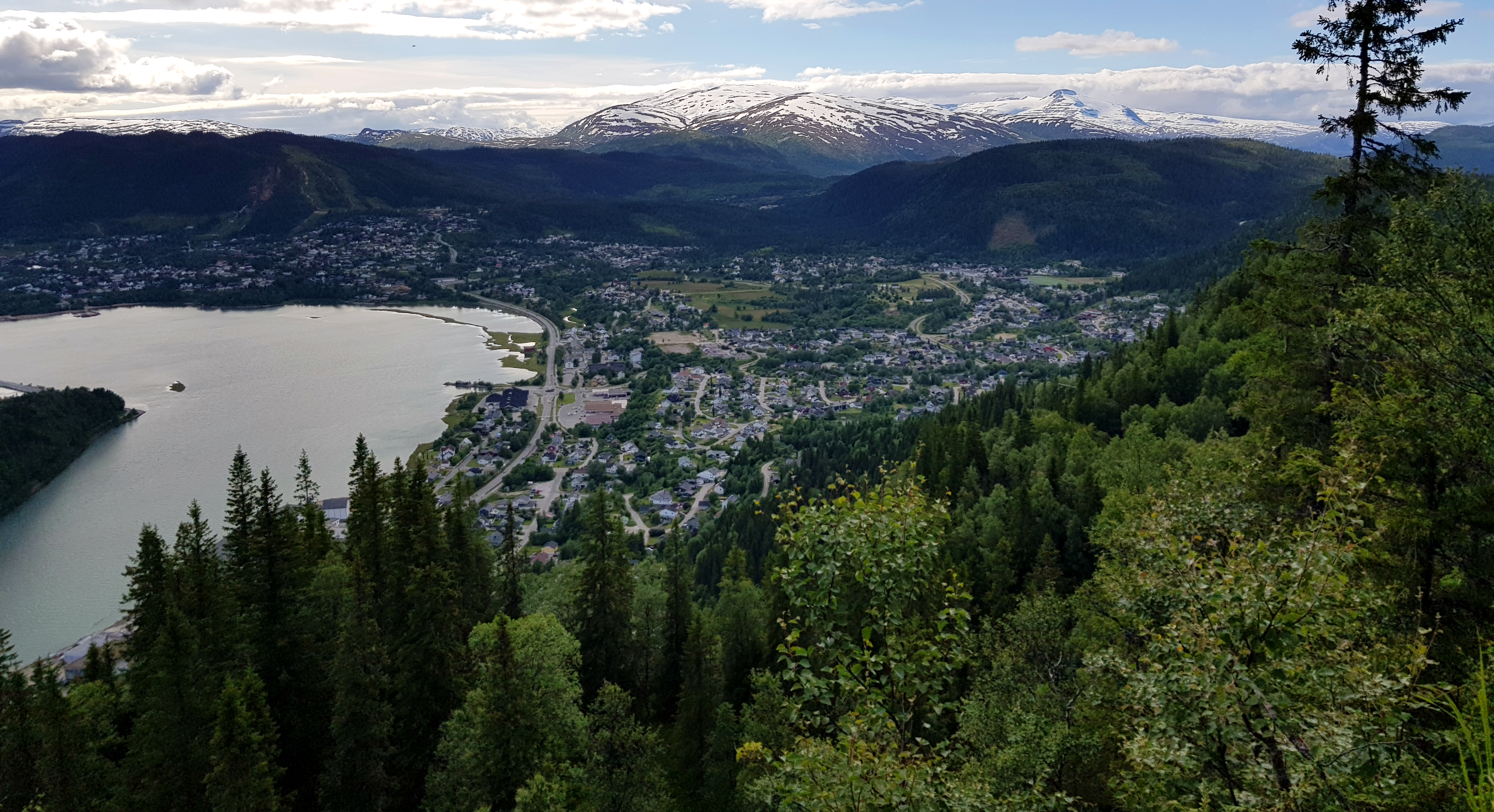 Tjuvtrappa라는 현지 하이킹 코스에서 바라본 라넬바와 위테렌 교외의 모습.