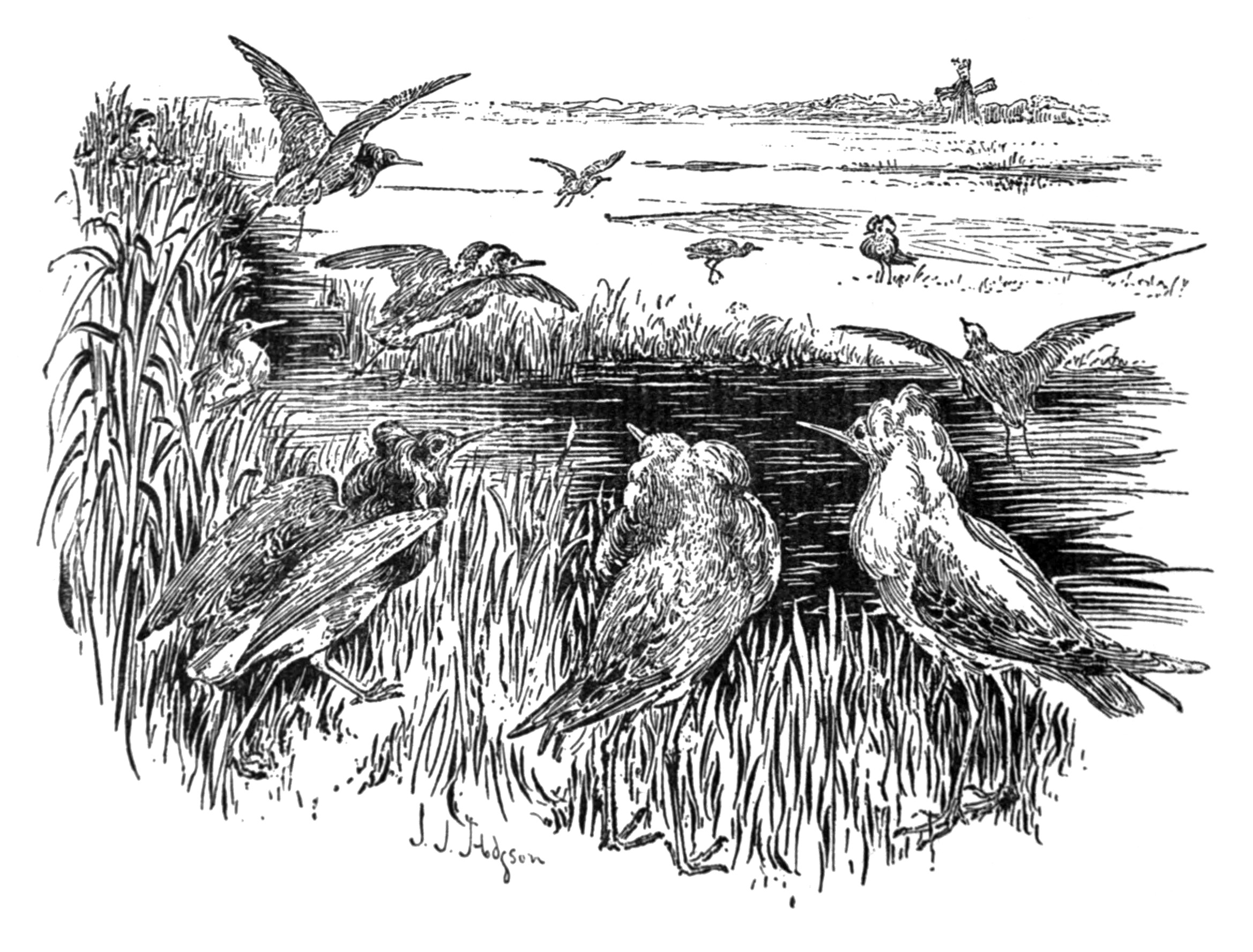 1897년, 먹이를 잡기 위해 그물로 목도리도요를 포획하는 모습