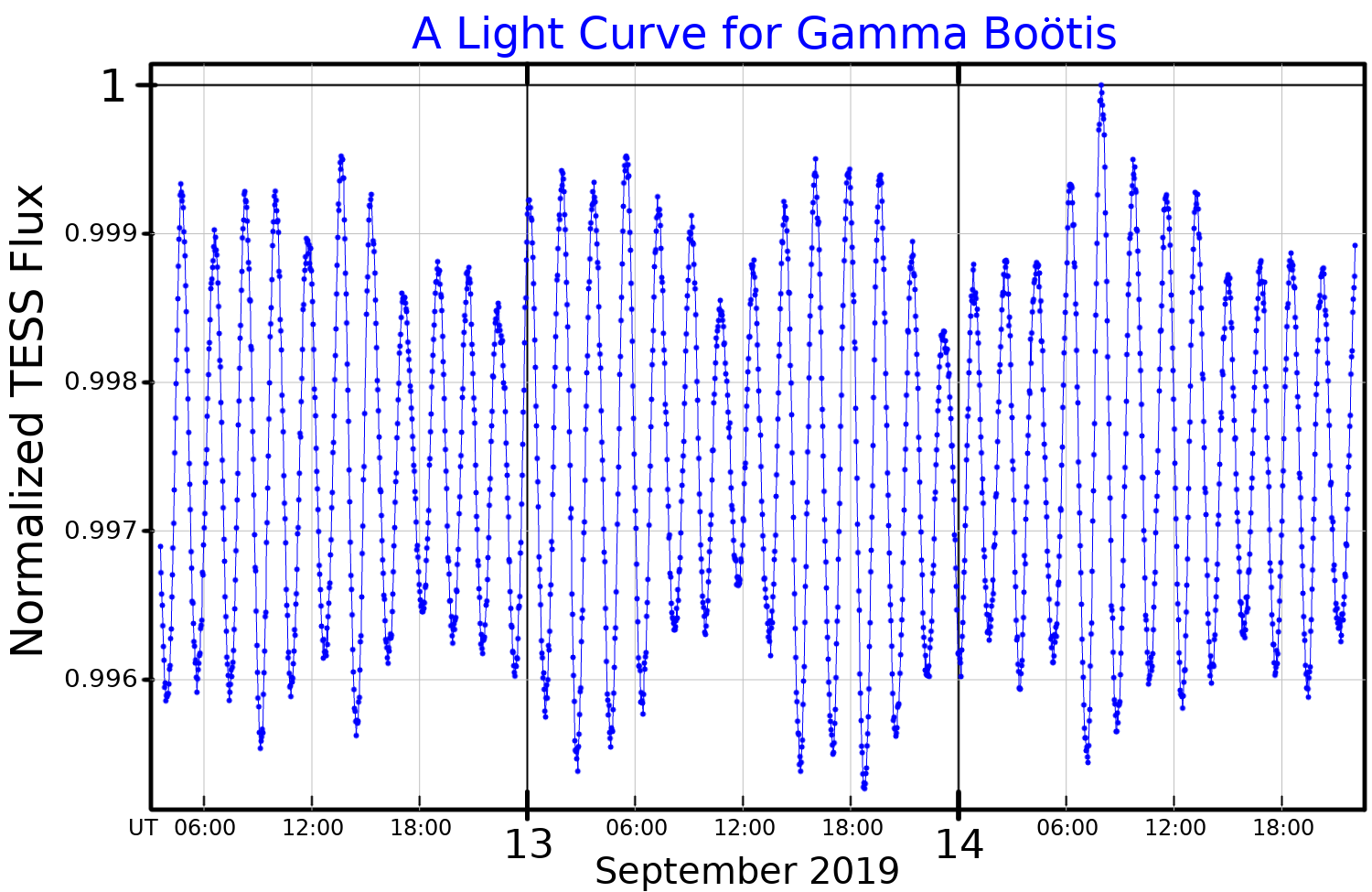 목동자리 감마의 광도 곡선, ''TESS 데이터''에서 도출됨