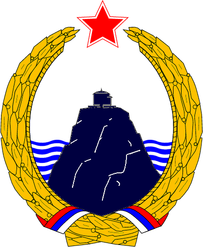 몬테네그로 사회주의 공화국 시대에는 쌍두 독수리가 폐지되었고, 바다에 떠 있는 로브첸 산 도안이 국기와 묶인 월계관으로 둘러싸여 위에 붉은 별을 더하는 전형적인 사회주의 디자인이었다.