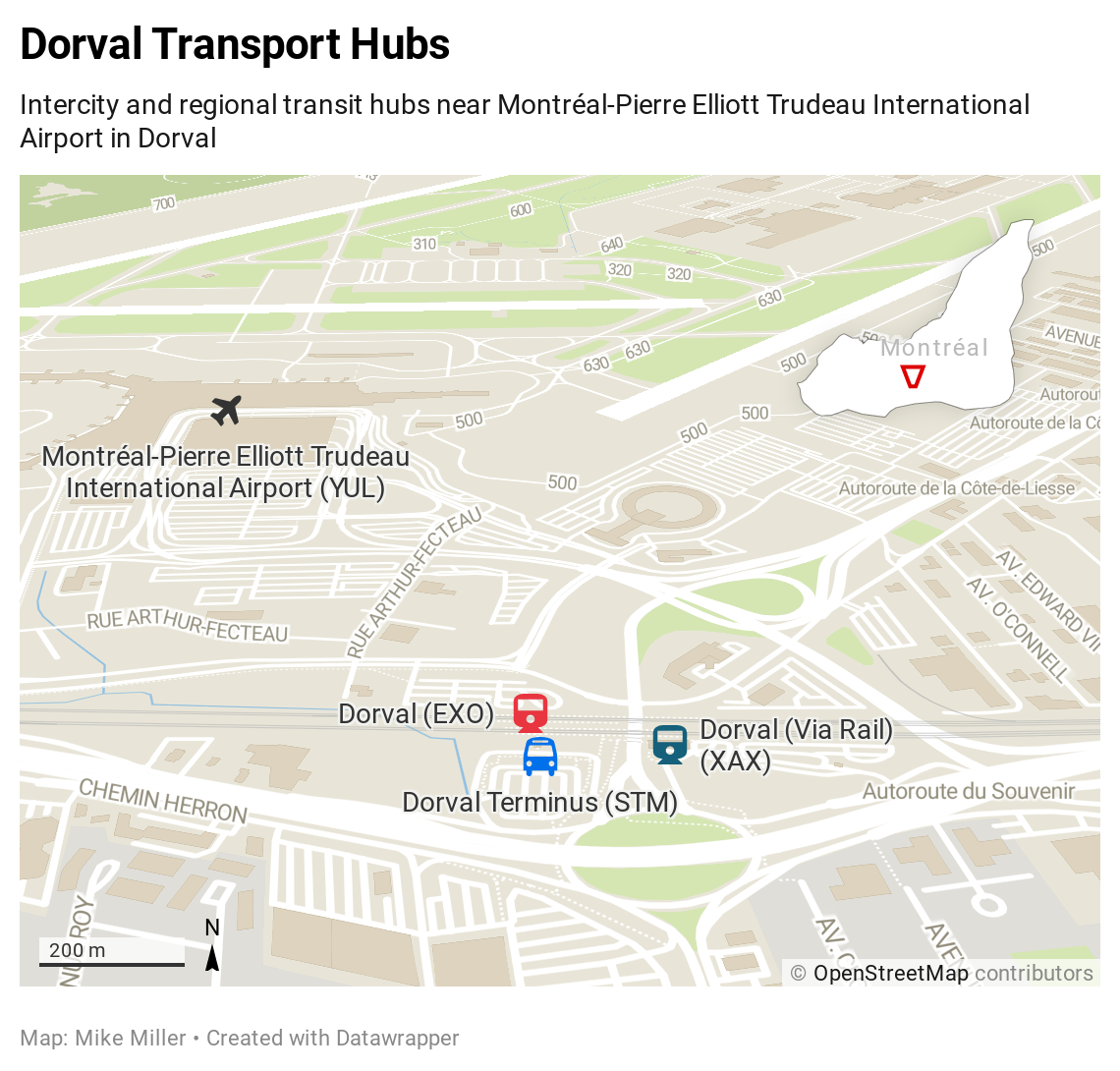 미라벨(국제선)과 도르발(대륙선)의 동시 운영은 몬트리올을 국제 항공사에 덜 매력적으로 만들었다. 몬트리올 경유 승객은 국내선에서 국제선 환승을 위해 긴 버스 여행을 해야 했고, 몬트리올 시민들은 국제선 항공편을 타기 위해 도시 외곽으로 멀리 여행해야 했다. 대부분의 국제 항공사는 국내선과 국제선 항공편을 모두 처리하는 토론토 피어슨 국제공항을 선호하여 몬트리올을 우회했다. 1997년 도르발이 다시 국제선 항공편을 처리하기 시작했지만, 국제 항공사의 복귀는 더뎠다.[15]