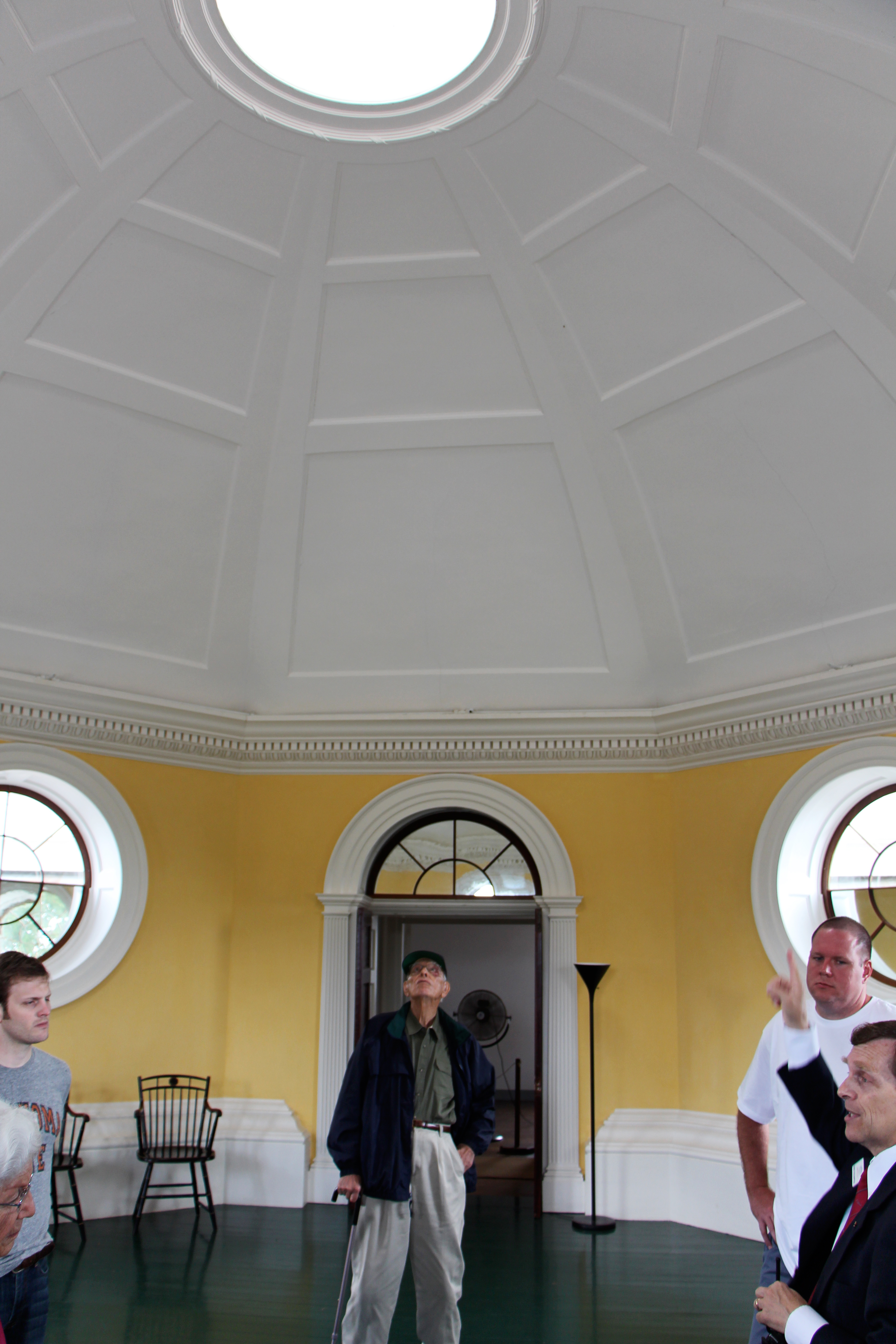 동쪽 정면의 현관(포르티코) 천장에는 풍향계와 연결된 눈금판이 설치되어 바람의 방향을 표시한다. 외부 동쪽 벽에는 큰 시계가 있는데, 제퍼슨이 밖에서 일하는 사람들에게 충분하다고 생각하여 시침만 달려 있다. 현관에는 제퍼슨이 디자인한 '그레이트 클락'이 시간을 나타내며, 루이스 & 클라크 탐험대가 수집한 기록들도 보관되어 있다. 바닥 깔개는 제퍼슨이 실내에서도 마치 밖에 있는 듯한 느낌을 원했기 때문에 풀색으로 칠해졌다.