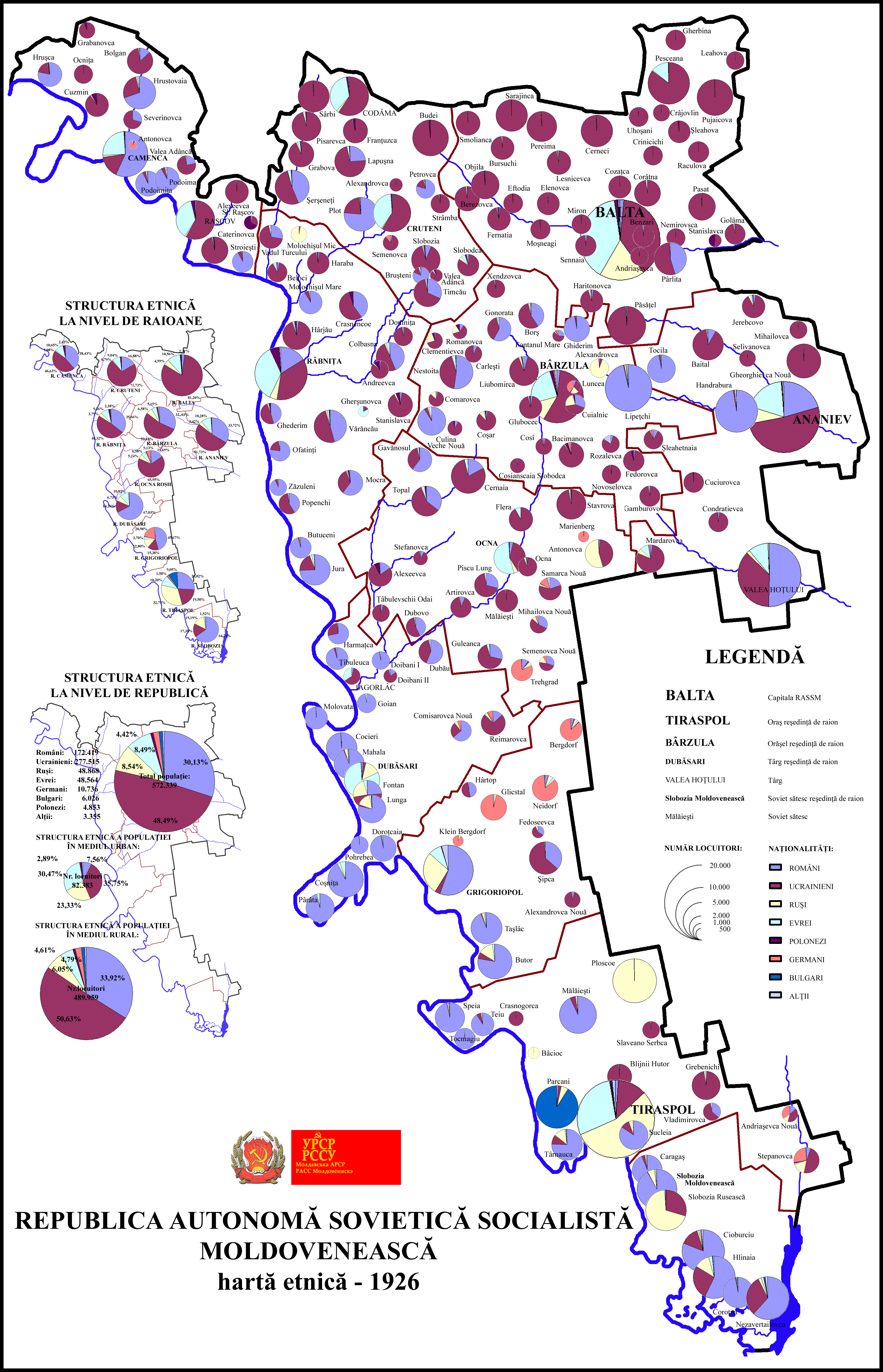 1924년 10월 12일, 몰도바 자치주는 자치 공화국으로 승격되었고, 발타 구역(수도가 위치)과 같이 몰도바인 인구가 적은 지역(몰도바인 2.52%)도 포함되었다.[9]