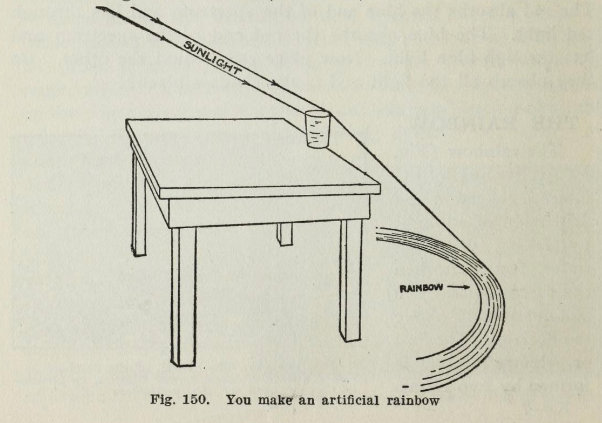 더욱 간접적인 실험적 접근 방식은 유사한 굴절 기하학을 찾는 것이다. 예를 들어, 환천정호, 환수평호, 패리호는 회전 대칭(즉, 비각주) 정적 물체를 통한 굴절에 의해 재현될 수 있다.[9] 특히 물컵을 이용한 간단한 실험으로 화려한 환천정호와 환수평호를 인공적으로 재현할 수 있다. 물이 채워진 원통형 컵을 통한 굴절은 육각 얼음 결정체를 통과하는 굴절과 거의 동일하여 생생한 색상의 환천정호와 환수평호를 만든다. 이 실험은 1920년부터 알려져 있었으며, 종종 무지개를 나타내는 것으로 오해되기도 한다.[10]