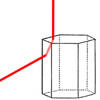빙정의 각 면은 60도, 90도, 120도 중 하나의 각을 이루고 있으므로, 빙정은 꼭지각이 60도, 90도, 120도 중 하나의 프리즘 역할을 한다. 빛이 육각기둥 모양의 빙정의 한쪽 면에서 입사하여 옆면으로 나가려고 하는 경우, 빙정은 꼭지각 120도의 프리즘 역할을 하지만, 이때는 빛이 전반사되어 버리기 때문에 이 꼭지각에 해당하는 고리는 존재하지 않는다.