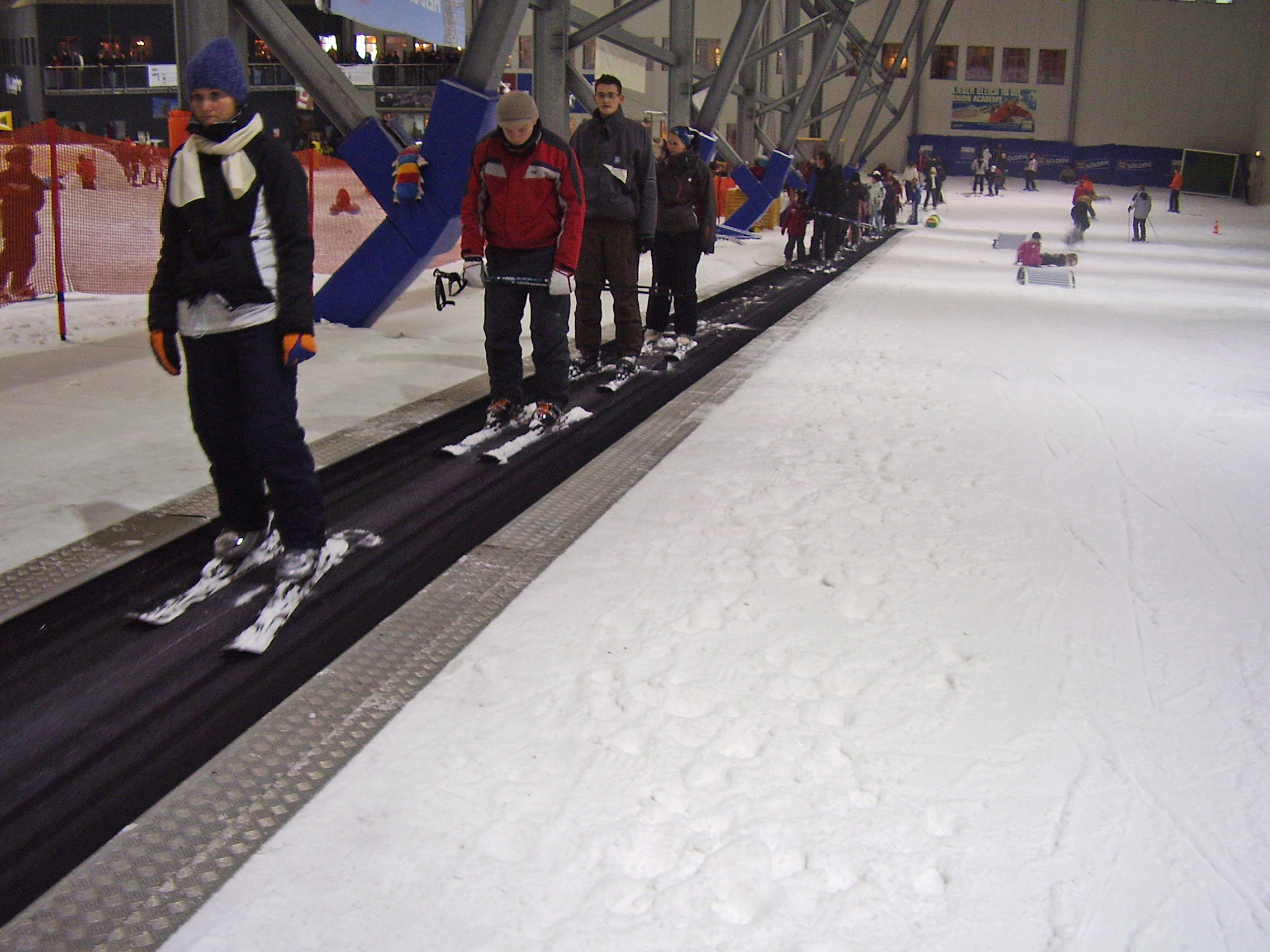 1961년, 짐 도우너(Jim Downer)는 런던 채링크로스 지하철역에서 열린 BBC 전시회를 위해 최초의 평평한 런닝 '무빙워크'를 설계하고 던롭에서 제작했다.[12]1970년대, 던롭은 ''스피드웨이(Speedaway)'' 시스템을 개발했다.[13] 이는 스위스 제네바에 위치한 배텔 기념 연구소(Battelle Memorial Institute)의 가브리엘 불라동(Gabriel Bouladon)과 폴 쭈피거(Paul Zuppiger)가 발명한 것이었다. 스피드웨이는 승하차 구역이 넓고 천천히 움직여 최대 4명의 승객이 동시에 탑승 가능하여 시간당 약 10,000명을 수송할 수 있었고, 운송 구역은 더 좁고 빠르게 움직였다. 시스템 입구는 평행사변형 모양의 넓은 금속 발판이 있는 에스컬레이터와 유사했고, 짧은 이동 후 발판은 한쪽으로 가속되어 서로 지나가면서 좁아지지만 더 빠르게 움직이는 트랙을 형성했다. 승객은 포물선 경로를 통해 최대 15km/h까지 가속되었다. 이 시스템은 1975년에도 개발 중이었지만 상업적으로 생산되지는 않았다.