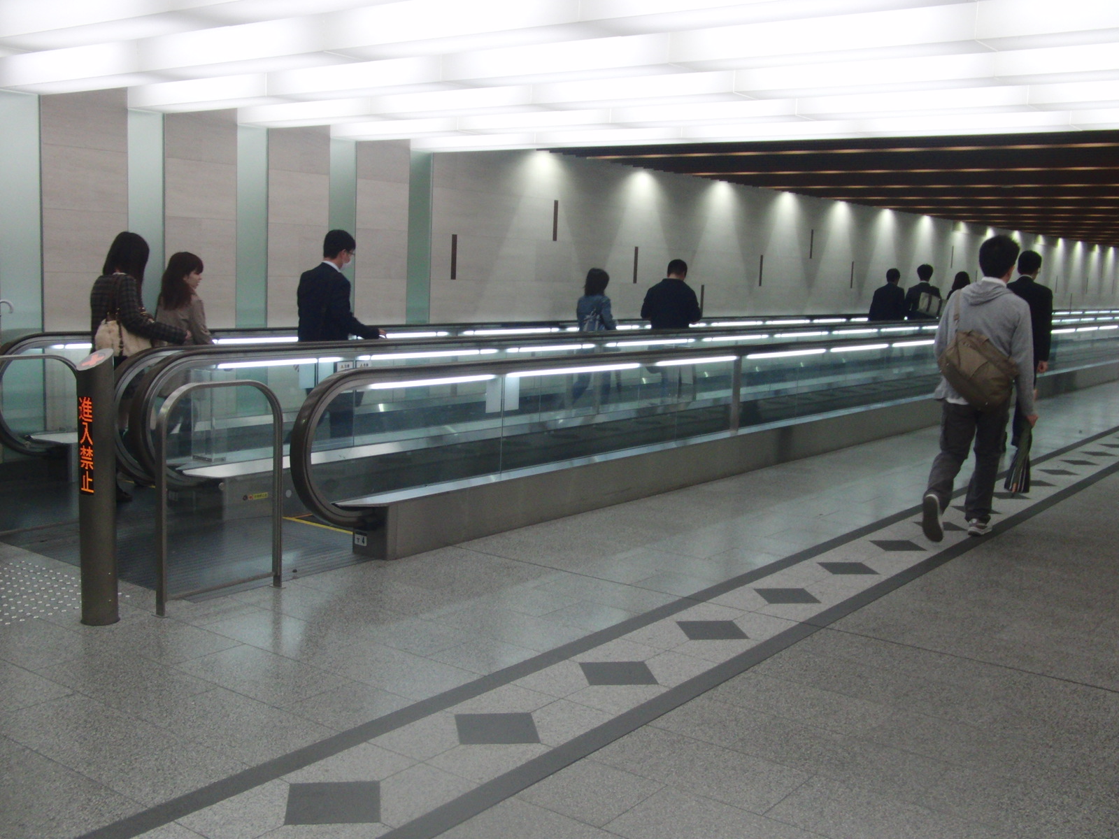 1970년 오사카 만박을 통해 무빙워크가 일본에 널리 알려졌지만, 같은 해 3월 26일 비상 정지로 인해 이용객들이 도미노처럼 넘어지면서 42명이 부상당하는 사고가 발생했다. 이 사고로 인해 한동안 무빙워크에 대한 부정적인 이미지가 생기기도 했다.[40]