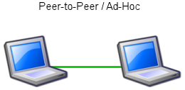 애드혹(Ad-hoc) 네트워크는 스테이션이 피어 투 피어(P2P) 방식으로만 통신하는 네트워크이다.[4] 기지국이 없으며 통신 허가를 내주는 곳도 없다.[4] 이는 독립 기본 서비스 세트(IBSS)를 사용하여 수행된다.[4] Wi-Fi 다이렉트 네트워크는 스테이션이 피어 투 피어로 통신하는 다른 유형의 무선 네트워크이다.[4] 피어 투 피어 네트워크에서는 서로 통신 범위 내에 있는 무선 장치가 중앙 액세스 포인트를 거치지 않고 직접 검색하고 통신할 수 있다.[4]Wi-Fi P2P 그룹에서 그룹 소유자는 액세스 포인트 역할을 하고 다른 모든 장치는 클라이언트 역할을 한다. Wi-Fi 다이렉트 그룹에서 그룹 소유자를 설정하는 두 가지 주요 방법이 있다. 한 가지 방법은 사용자가 수동으로 P2P 그룹 소유자를 설정하는 것이다. 이 방법은 ''자율 그룹 소유자''(''자율 GO'')로도 알려져 있다. 두 번째 방법인 ''협상 기반 그룹 생성''에서는 두 장치가 그룹 소유자 의도 값을 기반으로 경쟁한다. 의도 값이 더 높은 장치가 그룹 소유자가 되고 두 번째 장치는 클라이언트가 된다. 그룹 소유자 의도 값은 무선 장치가 인프라 WLAN 서비스와 P2P 그룹 간의 상호 연결을 수행하는지 여부, 무선 장치의 사용 가능한 전력, 무선 장치가 다른 그룹의 그룹 소유자인지 여부 또는 첫 번째 무선 장치의 수신 신호 강도에 따라 달라질 수 있다.