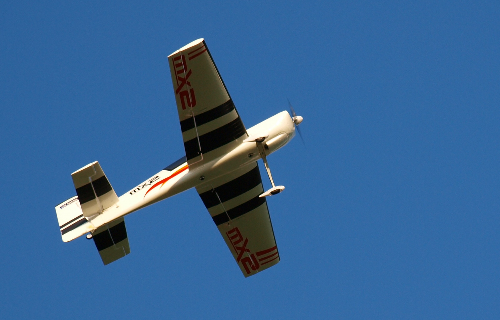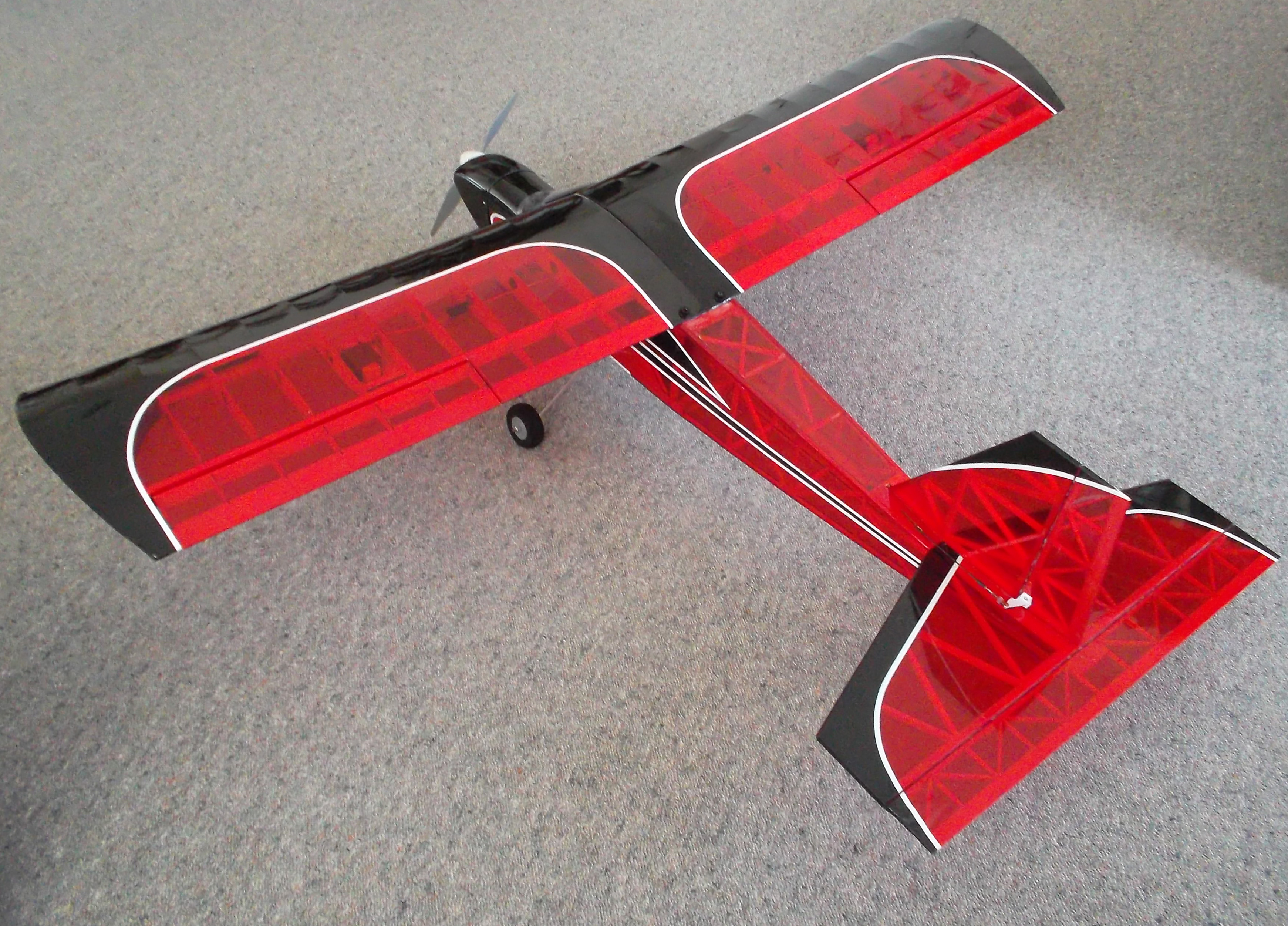 교쇼(Kyosho) "팬텀 70" 복엽기. 리노 에어 레이스(Reno Air Races) 우승기의 세미 스케일 복제품으로, 유리 섬유와 발사/합판으로 제작되었다.
