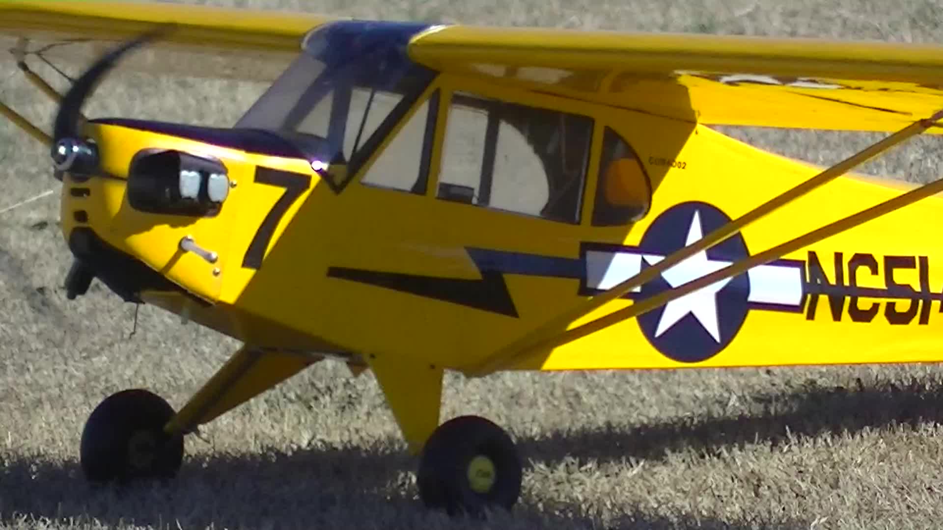 전통적으로(1967년 이후) 미국의 대부분의 무선 조종 항공기는 통신을 위해 72MHz 주파수 대역을 사용했다. 초기에는 72MHz 대역 내에서 서로 80kHz 간격으로 떨어진 6개 채널과 별도로 75.640MHz 채널이 사용되었다. 이 주파수들은 1983년 미국 연방 통신 위원회(FCC) 개혁으로 "협대역" RC 주파수가 도입되기 전까지 합법적으로 사용 가능했다. 이후 채널 간격은 1983년부터 1991년까지 40kHz로 좁혀졌고, 1991년부터 현재까지는 20kHz 간격으로 조정되어 비행 모형 전용으로 72MHz 대역에 총 50개의 주파수가 할당되었다. 같은 기간 동안 75MHz 대역은 지상 기반 RC 모델(자동차, 보트 등) 전용으로 지정되었으며, 1991년 전환 완료 후 동일한 20kHz 채널 간격으로 30개의 주파수를 사용할 수 있게 되었다.[21] 오늘날 캐나다에서 VHF 대역 RC 장비를 사용하는 조종사들은 미국 조종사들과 동일한 72MHz 및 75MHz 주파수를 같은 종류의 모델에 사용한다.[22]