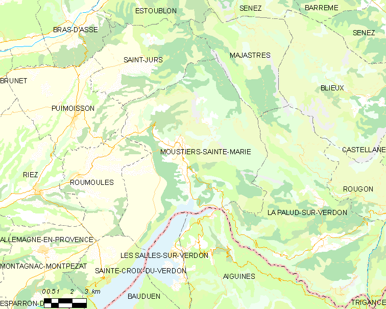 무스티에생트마리는 베르동 협곡으로 향하는 서쪽 출입구에 위치해 있으며, 수 세기 동안 도자기, 그 중에서도 파이앙스 교역의 중심지였다. 샘 하나가 절벽을 타고 내려와 마을 내 폭포를 형성하여 수력 자원을 공급한다.