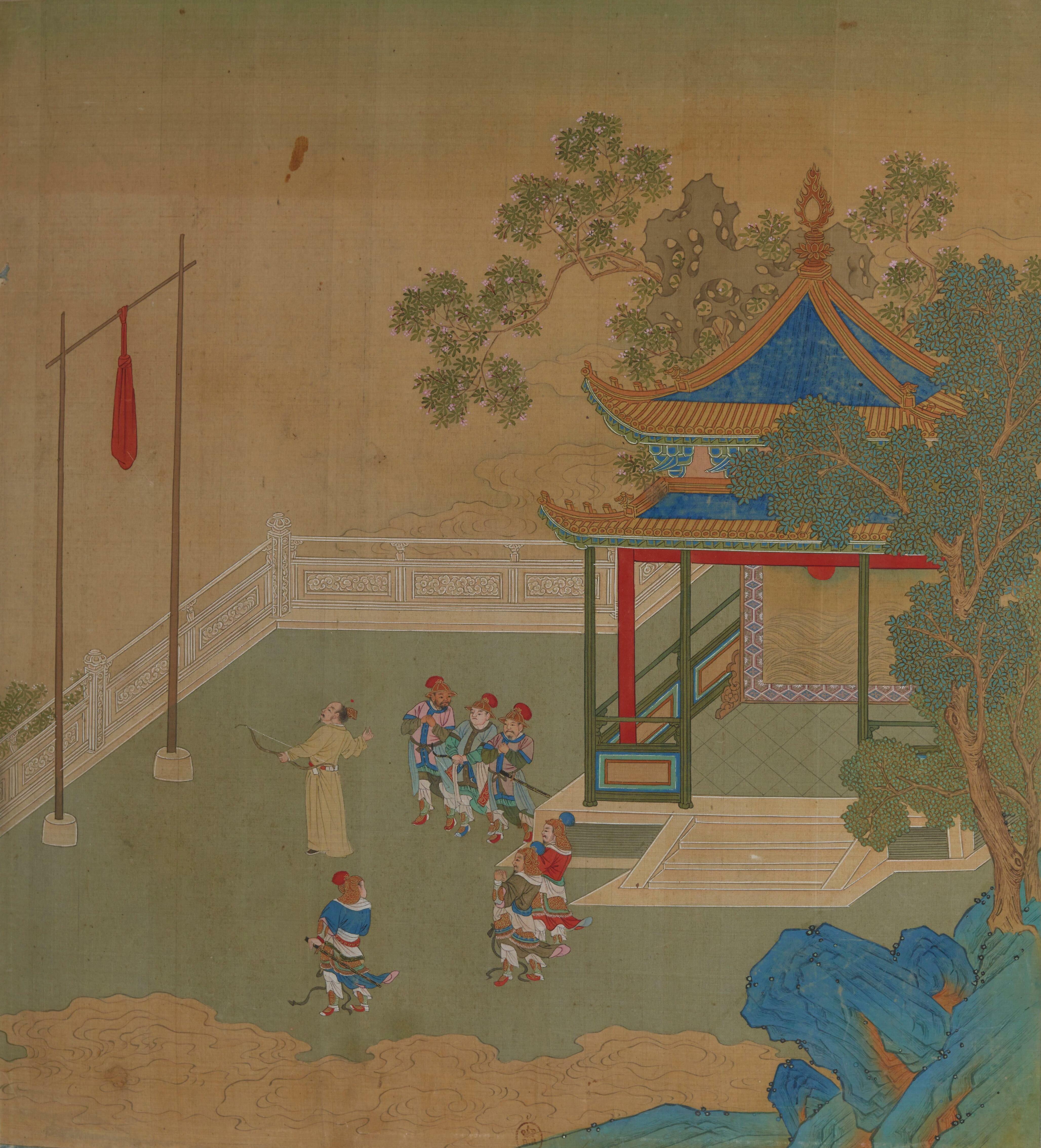 • 《사기》에 따르면, 무을은 "하늘의 신"의 나무 조각상(偶)을 만들고 사람들에게 주사위를 던져 그것을 대표하게 했다. 그는 그 우상육박 놀이를 했고, 우상이 지면 조롱했다. 또 가죽 부대에 를 채워 공중에 매달고 화살로 쏘았는데, 이를 "하늘 쏘기"라고 불렀다.[8]