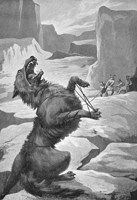 일본에서는 농부들이 멧돼지와 사슴으로부터 작물을 보호하기 위해 신사 근처의 굴에서 늑대를 숭배하고 음식을 바쳤다는 기록이 있다.[28] 늑대 그림으로 장식한 부적은 농경 사회에서 불, 질병, 기타 재난을 막고 다산과 풍요를 가져온다고 믿었다.[28][29] 아이누 민족은 자신의 조상이 늑대를 닮은 생물과 여신이 결합하여 생겼다고 믿는다.[81][29] 라이주(雷獣)는 신토 종교의 신 라이진(雷神)과 함께 천둥을 일으키는 것으로 여겨진다. 라이주는 평소에는 온순하지만, 뇌우가 칠 때는 흥분하여 나무, 밭, 건물 등을 뛰어다닌다.[28]4. 북극과 북아메리카 계열
