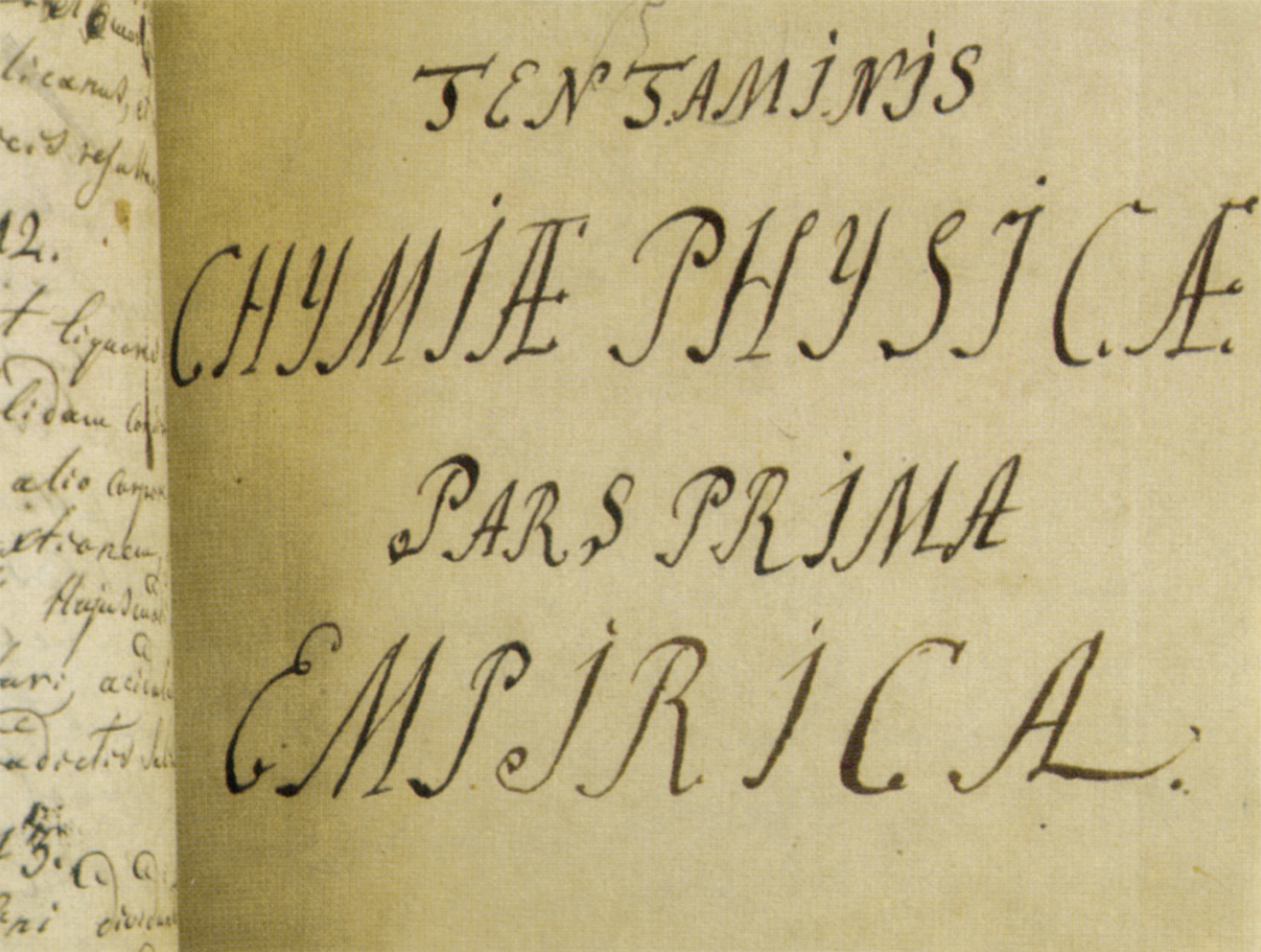 "물리화학"이라는 용어는 1752년 미하일 로모노소프(Mikhail Lomonosov)가 상트페테르부르크 대학교 학생들에게 Курс истинной физической химии|쿠르스 이스찐노이 피지체스코이 히미이ru("진정한 물리화학 강의")라는 제목의 강의를 하면서 처음 사용했다.[9] 이 강의 서문에서 그는 다음과 같이 정의했다. "물리화학은 물리적 실험의 조건 하에서 화학적 조작을 통해 복잡한 물질에서 일어나는 현상의 원인을 설명해야 하는 과학이다."