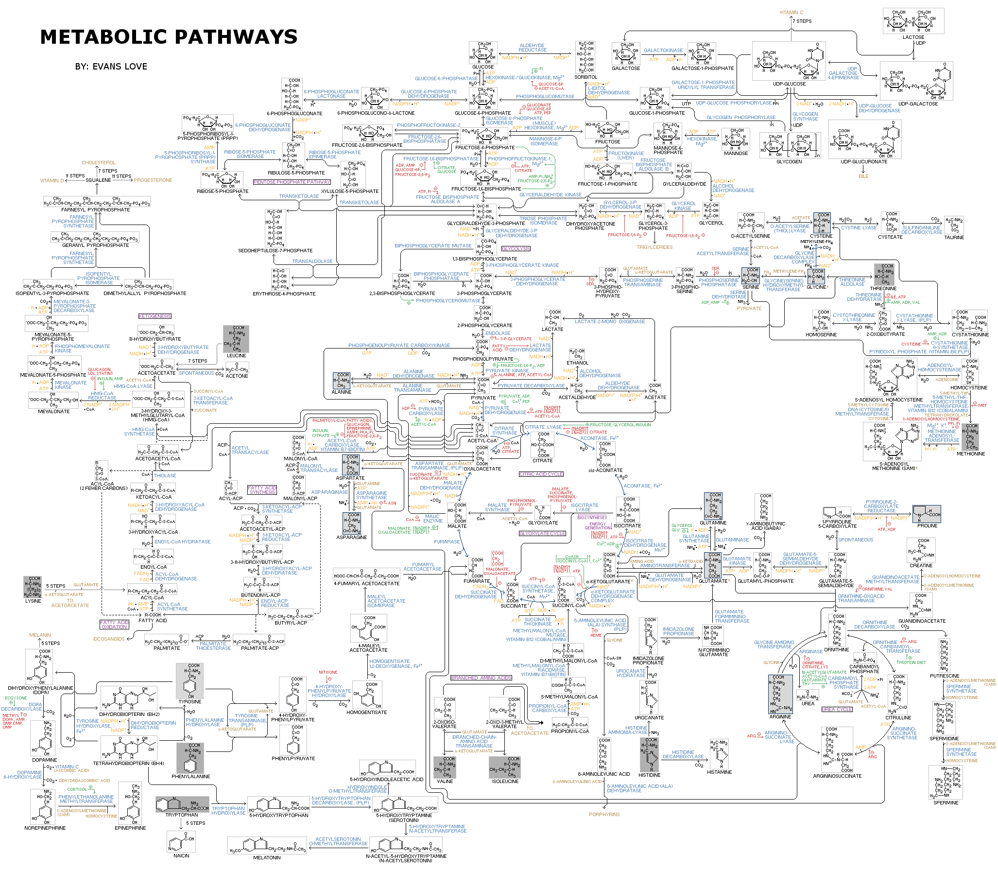 뉴클레오타이드는 아미노산, 이산화 탄소, 폼산으로부터 합성되는데, 이러한 합성과정에는 많은 에너지가 소모된다.[395] 따라서 대부분의 생물들은 이미 만들어져 있는 뉴클레오타이드를 효과적으로 회수하는 체계를 발달시켰다.[395][396] 퓨린은 뉴클레오사이드(리보스에 결합한 염기) 형태로 합성된다.[397] 아데닌과 구아닌은 뉴클레오사이드 전구체인 이노신 일인산에서 합성되며, 글라이신, 글루타민, 아스파르트산 등의 아미노산과 조효소 테트라하이드로엽산에서 전이된 폼산의 원자를 이용한다. 피리미딘은 글루타민과 아스파르트산에서 형성된 오로트산으로부터 합성된다.[398]6. 생체이물 및 산화환원 대사